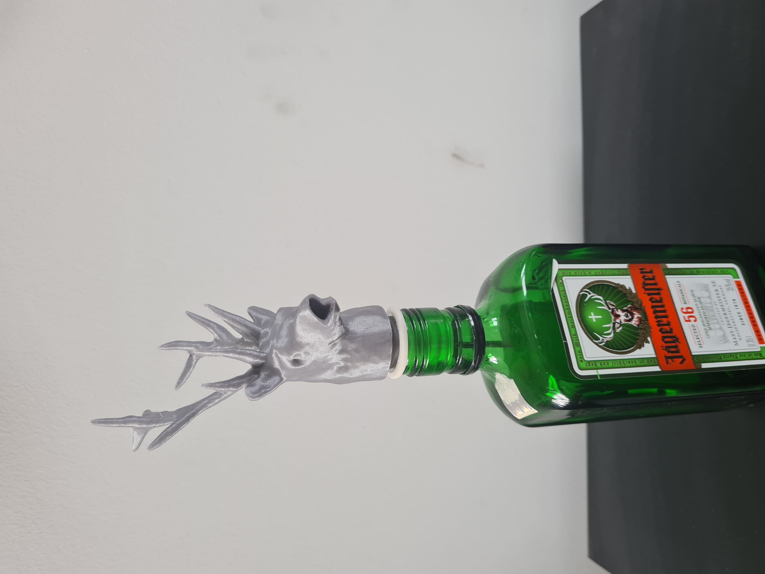 Phễu rót Jagermeister kiểu dáng tuần lộc giúp kiểm soát dòng rót chậm và ổn định. Model remix, khuyến nghị supports cho sừng và đáy miệng, infill 15%, in PLA Prusament. Có hướng dẫn lắp với phễu 9mm.