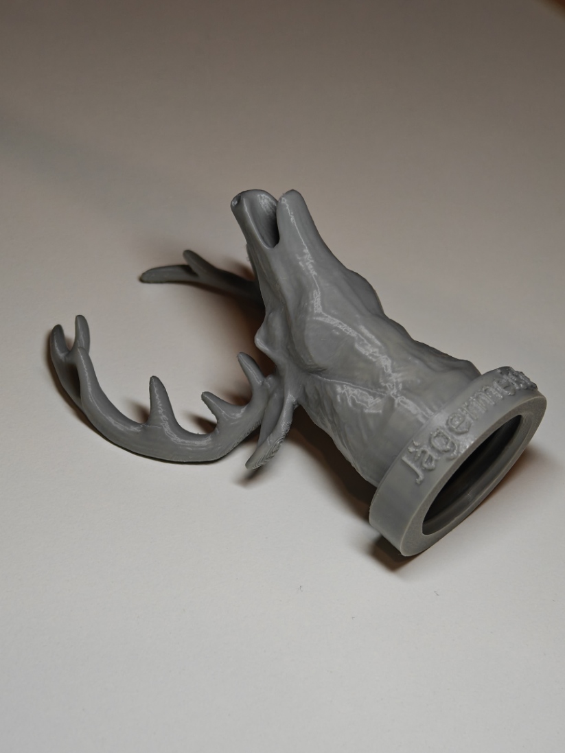 Mẫu phễu Jägermeister dạng vặn ren trực tiếp lên chai. Mình lấy phần screw và hình con vật từ các file khác nhau (vì thích phiên bản đó hơn) rồi gộp lại thành một file duy nhất.