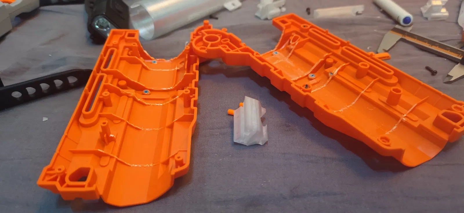 cứ thoải mái remix lại để làm cho nó eject chuẩn hơn. nếu muốn hỏi thêm thì bạn có thể liên hệ mình qua discord [glowyglowbug]. để lắp vừa thì phải cắt khá nhiều, mình khuyên in riêng phần “barrel” trước rồi cắt từ từ ở chỗ nào bị kẹt :)