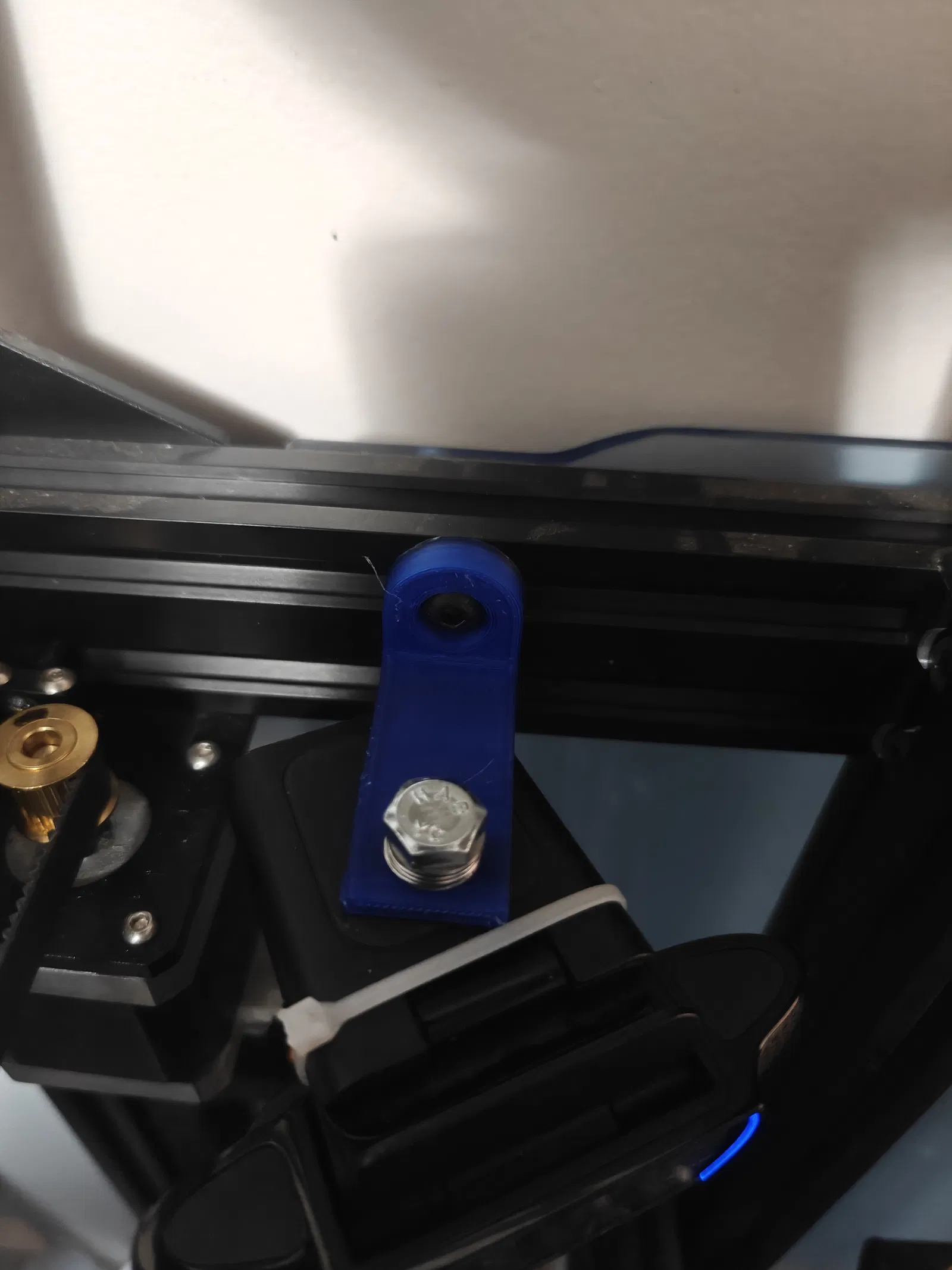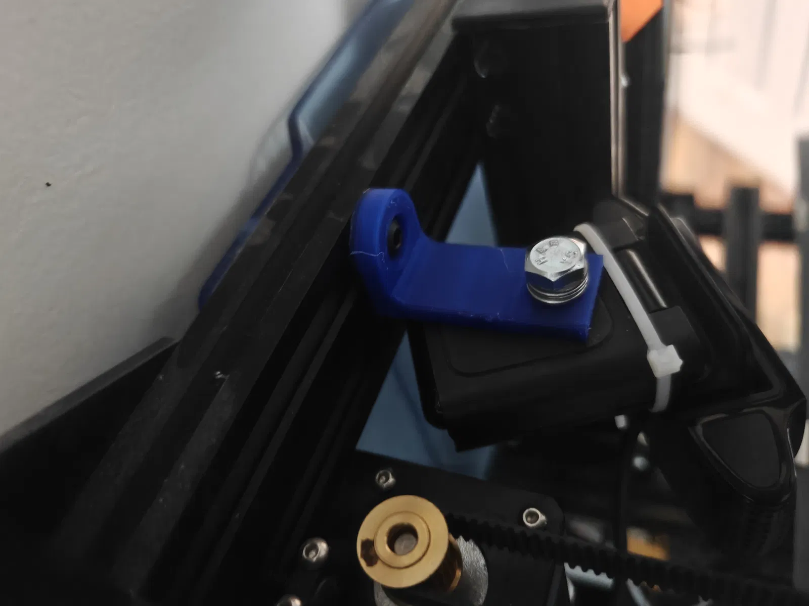 Một cái đế đơn giản để gắn webcam vô khe T. Cái đế đỡ camera này có các gân gia cố để cứng cáp hơn. Phiên bản đảo ngược thì dài hơn và bỏ gân để có thể lật lại nếu cần. Dùng bu lông 1/4-20 in. cho camera và các bu lông, đai ốc T-slot 5mm.