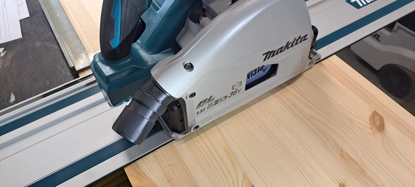 Mẫu đầu nozzle giúp kết nối máy cưa lặn dùng pin Makita DSP600ZJ với hệ thống hút bụi bằng đầu nối nhanh Makita. Gợi ý in: PET-G, layer 0.2, fill 15%, 4 perimeters, supports và brim.