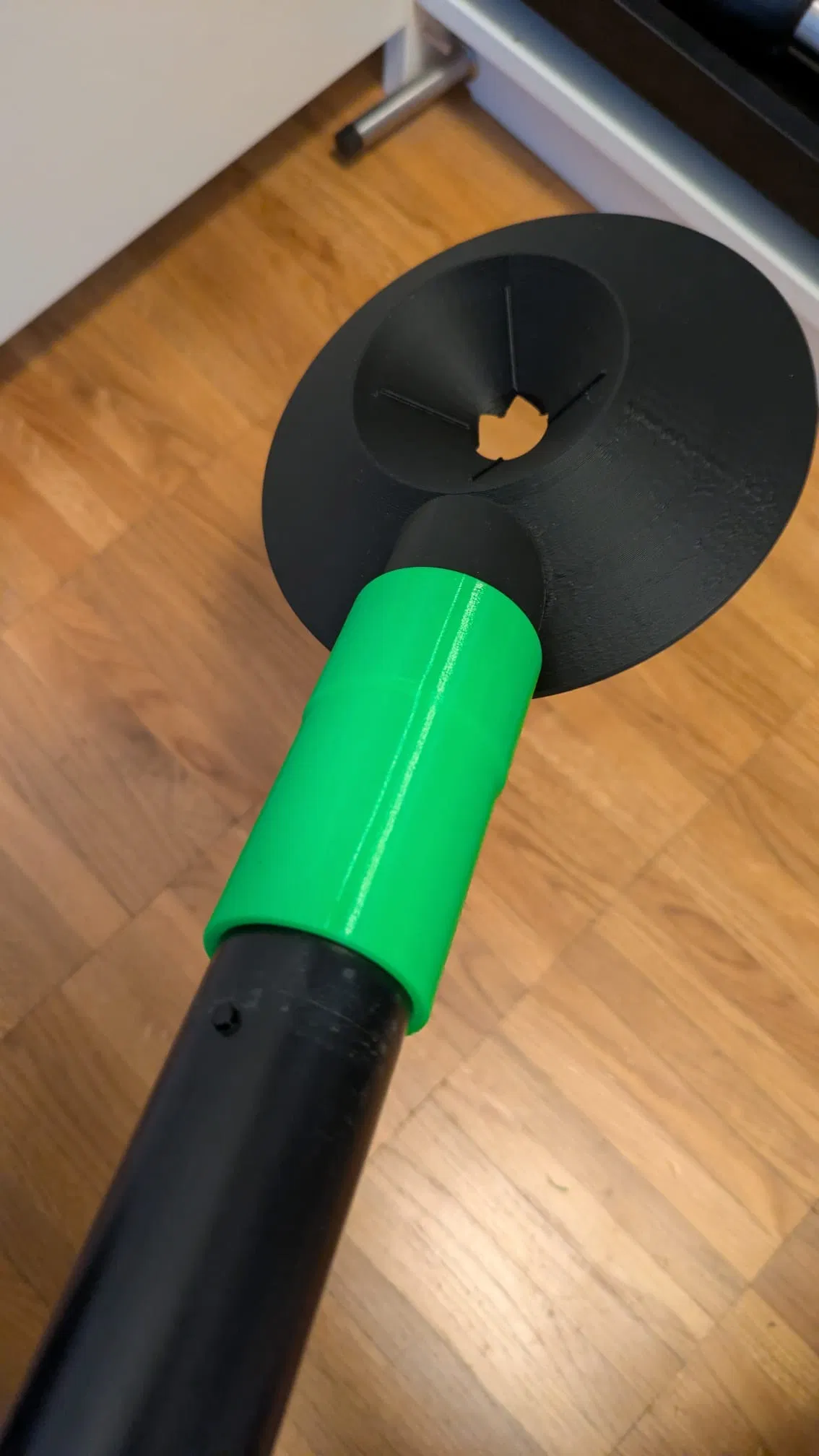 Không gắn vừa trực tiếp vào shop vacuum nên mình in một adaptor 35mm để nối đầu hút bụi cho máy khoan. Khuyến nghị in PETG, nhưng PLA cũng ổn; thiết kế không cần support.