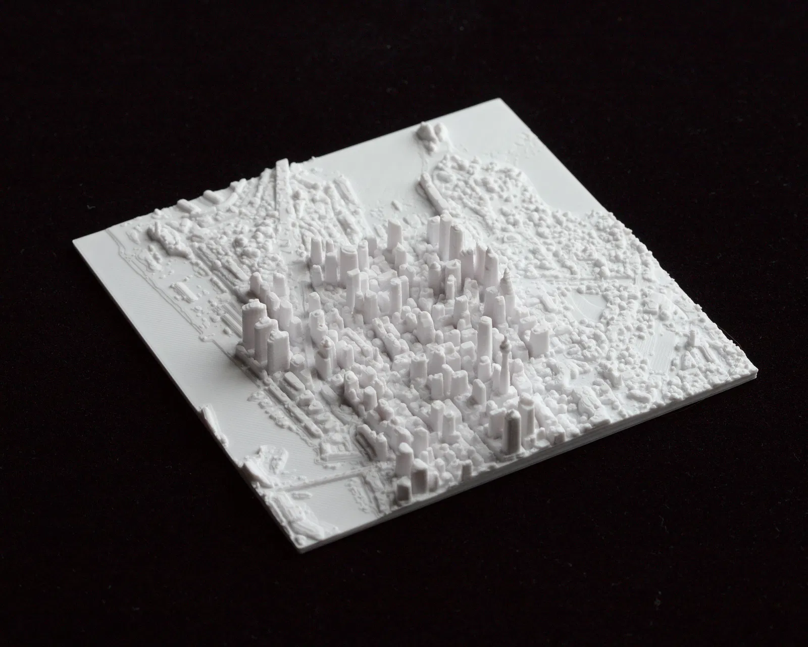 Tại Minicity.Art, tụi mình đã thu thập và xử lý dữ liệu LIDAR độ phân giải cao cho hàng trăm thành phố và thị trấn trên khắp thế giới. Sau đó tụi mình in mô hình ở tỉ lệ từ 1:10000 đến 1:2500, kích thước từ 6 inches tới 6 feet hoặc lớn hơn nữa. Bạn có thể tìm tụi mình trên web và Etsy.