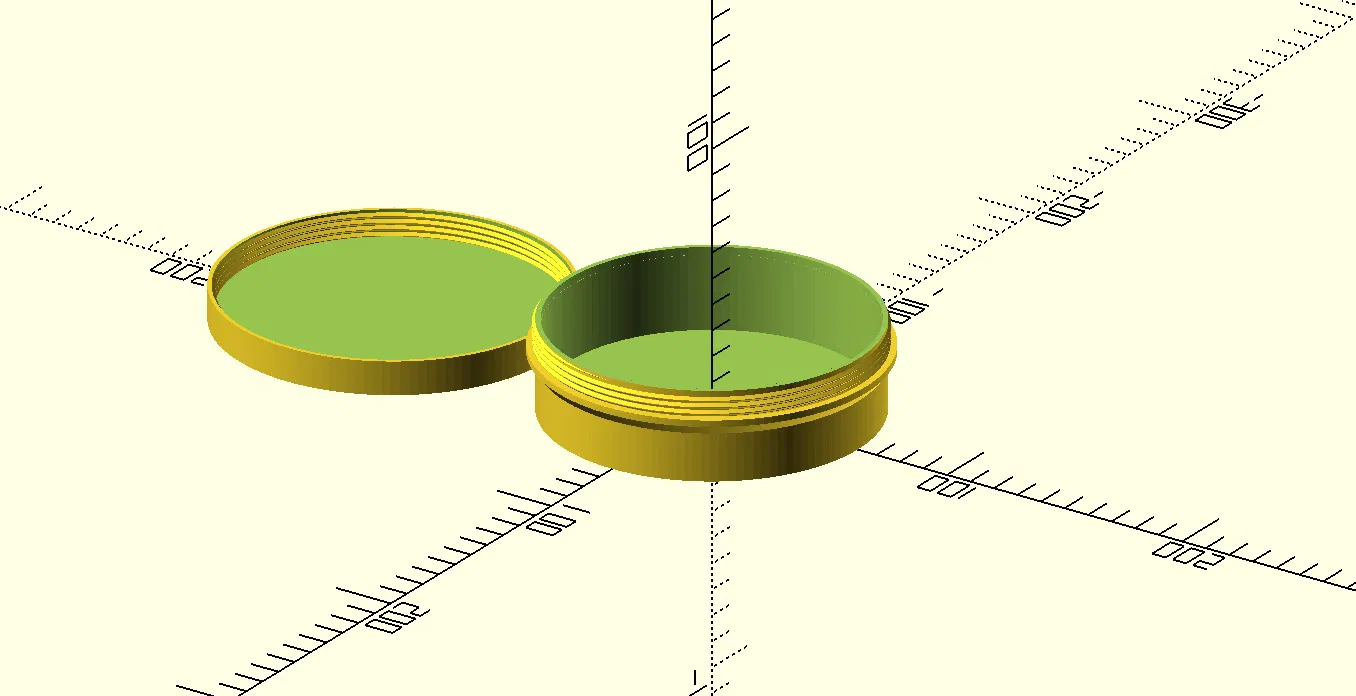 Mình đang tìm một mẫu hộp tròn parametric có nắp vặn (screw lid). Tìm trên Printables không thấy cái nào phù hợp, nhưng lại thấy một thiết kế rất hay bên Thingiverse.