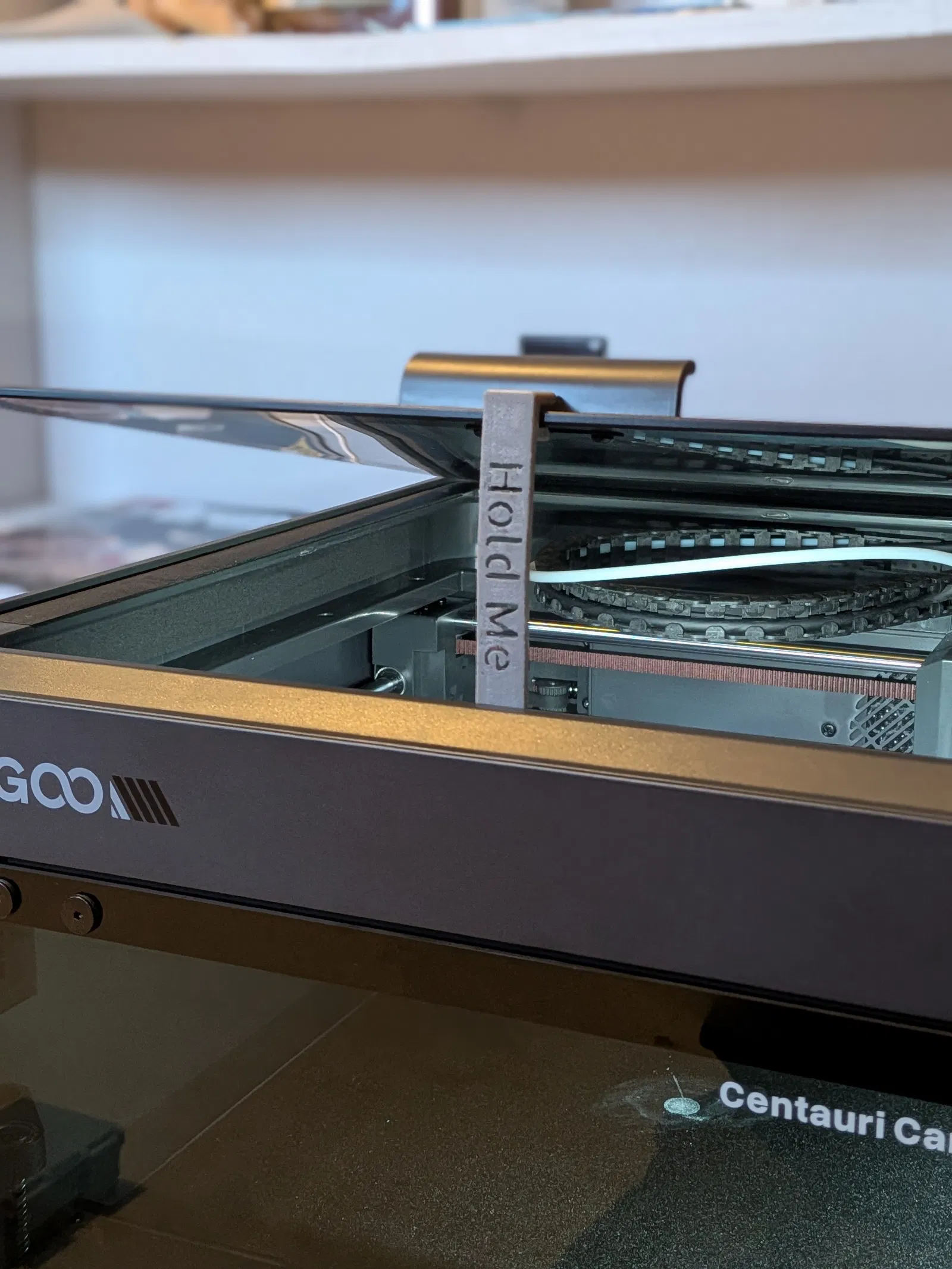 Mẫu in tiện dụng giúp kê/chống nắp cho các máy core XY khi in những loại filament nhiệt độ thấp. Khuyến nghị PETG, layer height 0.08–0.1 để chữ rõ; in úp mặt chữ để không cần supports.