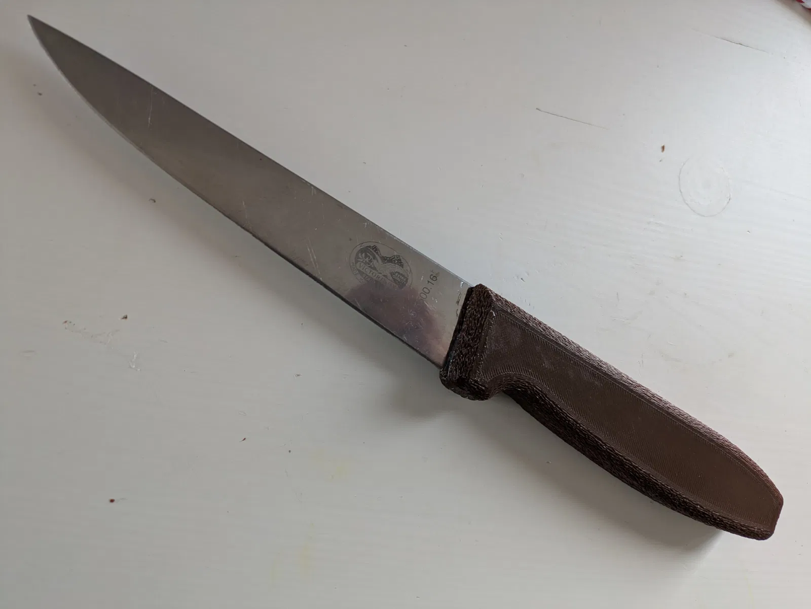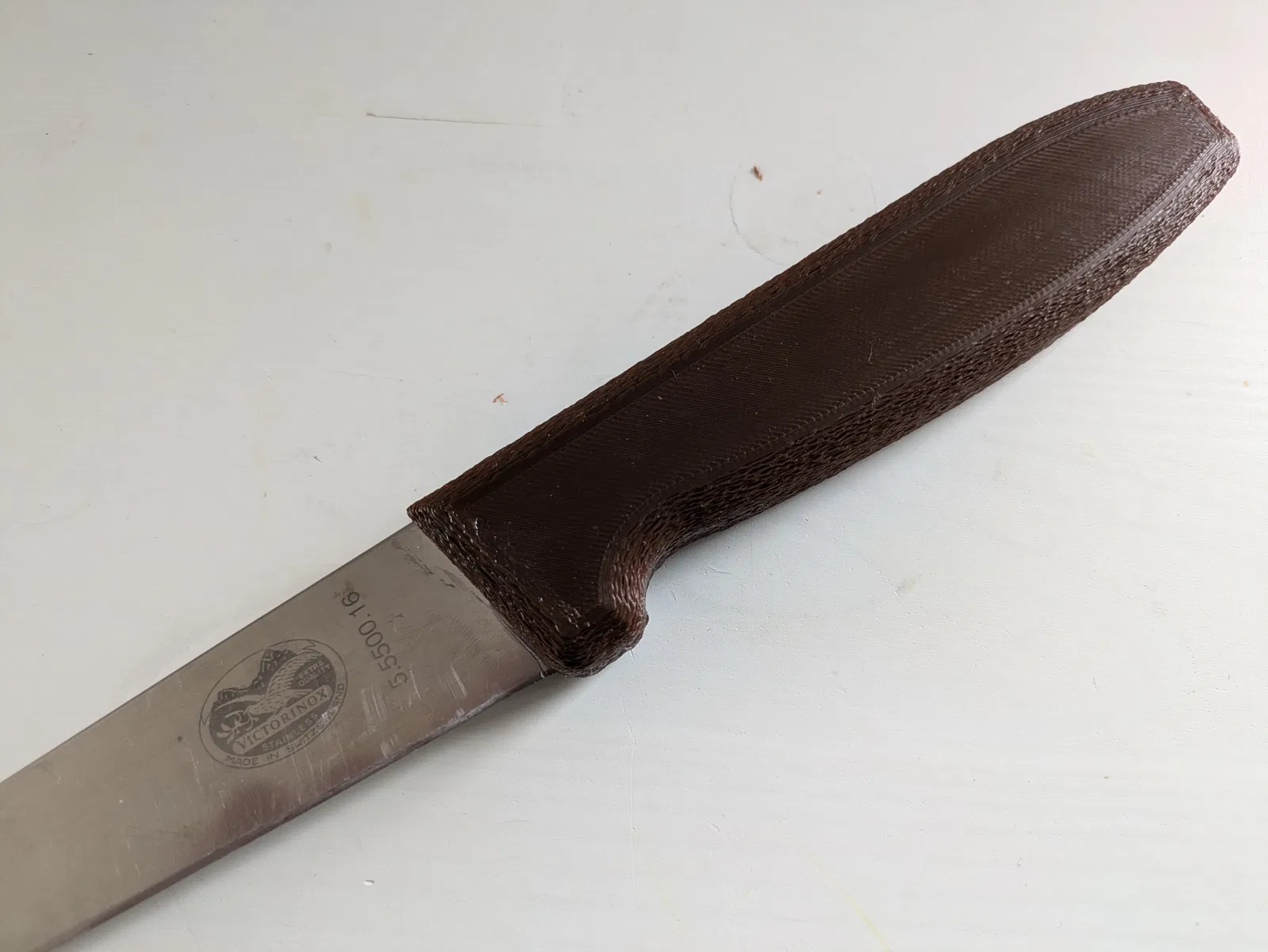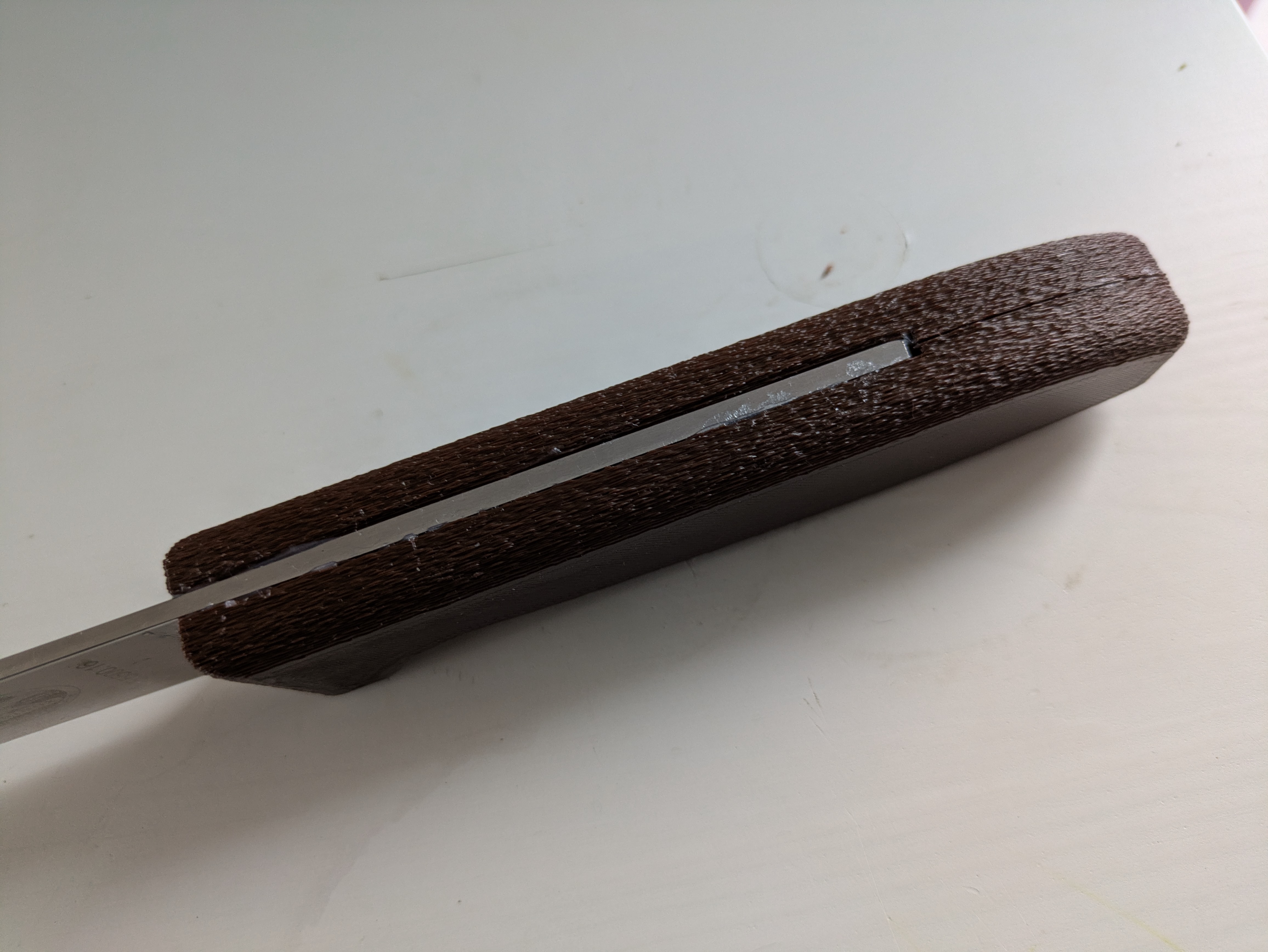 Con chó nhà mình nhai mất cái cán của con dao bếp Victorinox này. Nên mình phải thay cái cán gỗ cũ bằng cán in 3D.