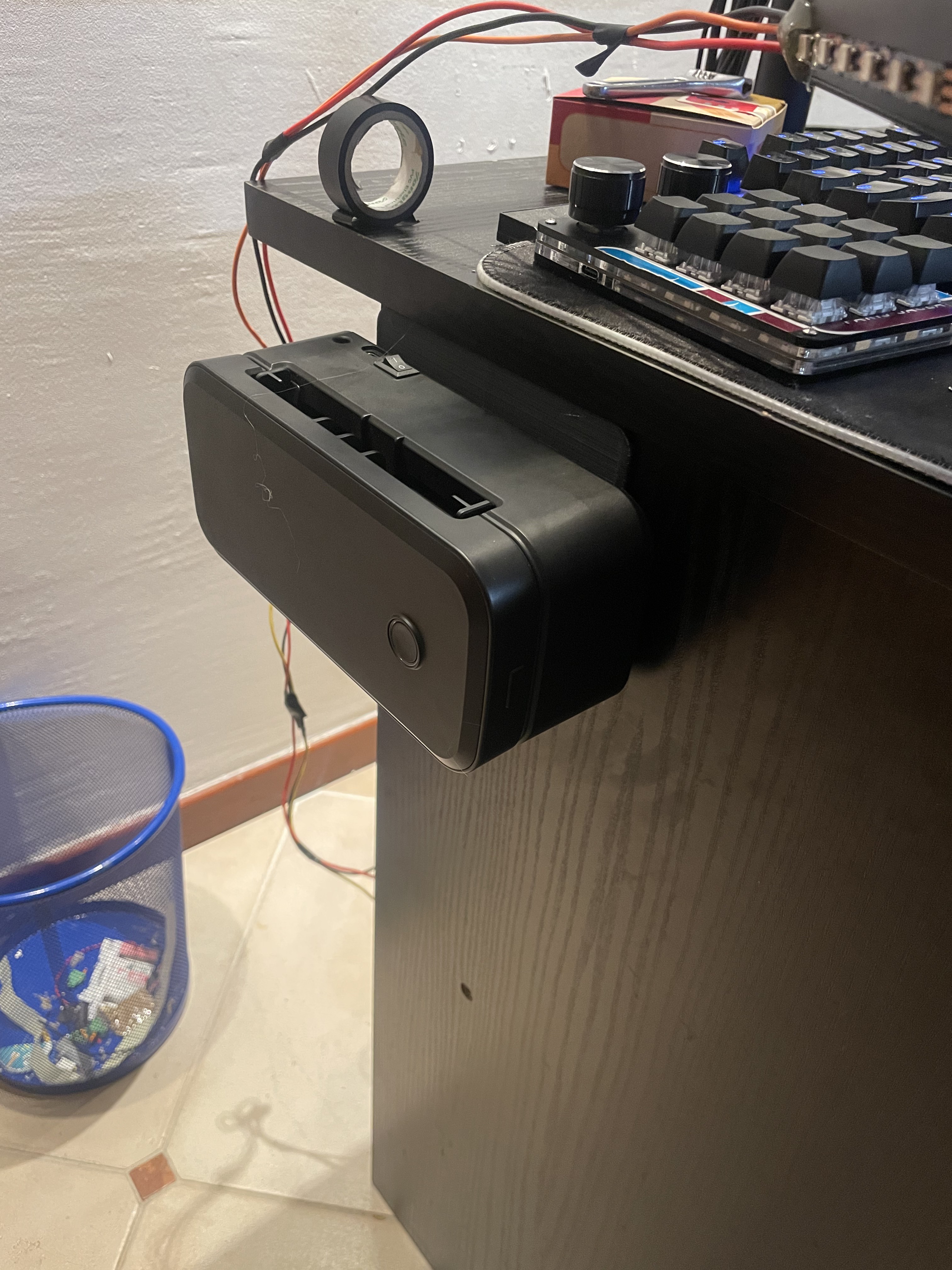 Lấy lại 100% diện tích mặt bàn mà không cần khoan một lỗ nào. Đây là bộ gá treo hông bàn dạng universal cho các máy in nhiệt in tem vận chuyển phổ thông (Munbyn, Beeprt, Xprinter, Rollo, v.v.). Bộ này giữ máy in theo phương đứng ở cạnh bên bàn làm việc.