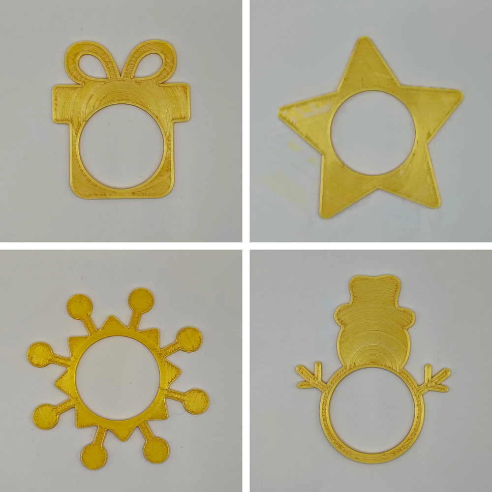 Bộ vòng khăn ăn gồm 12 hình dáng chủ đề mùa đông, vừa trang trí vừa giữ khăn gọn gàng cho bàn ăn. Phù hợp tiệc lễ, họp mặt cuối năm; in PLA/PETG với layer mịn để lên chi tiết sắc nét.