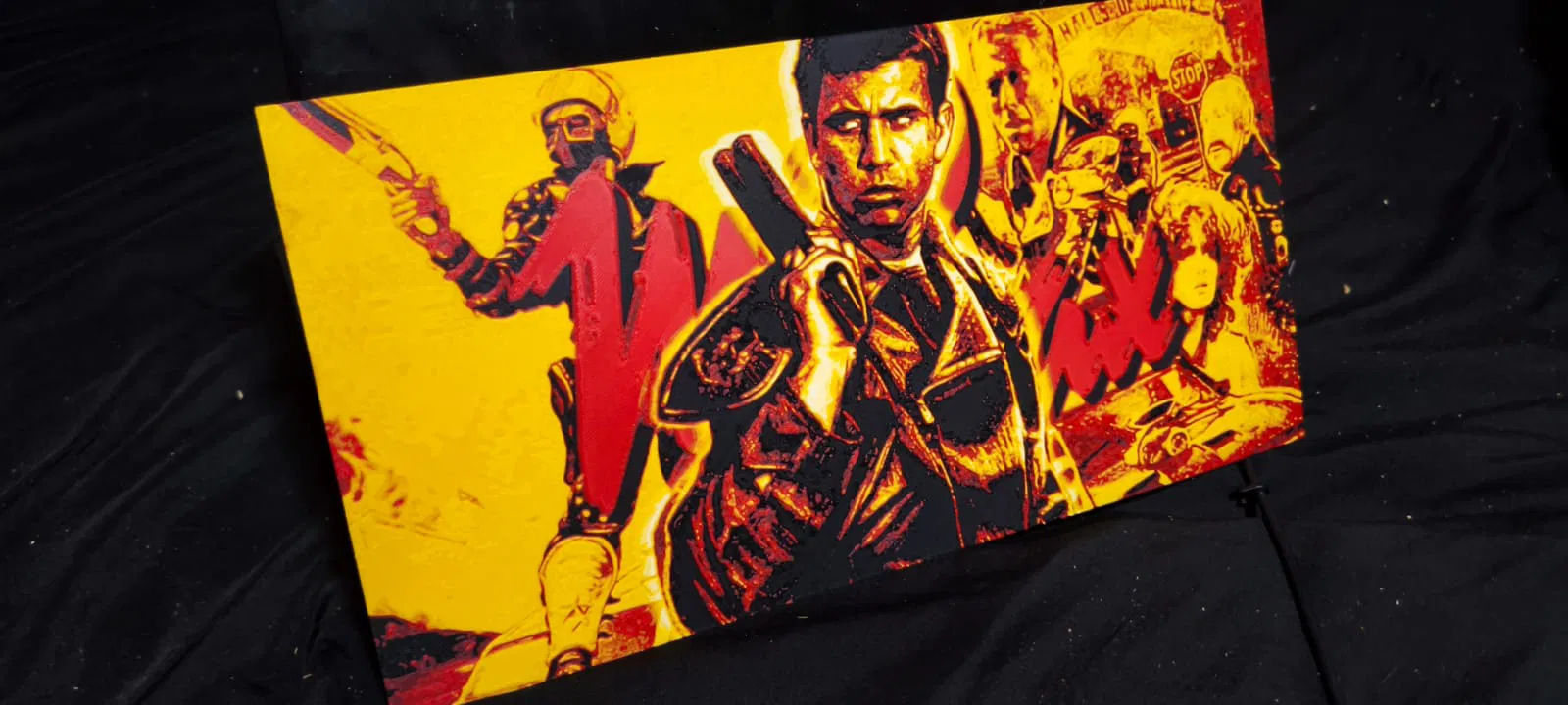 Mẫu Mad Max Hueforge dạng Hueforge 4 màu. Có thể scale nhưng nhớ đưa trục Z về 100% để màu lên đúng. Thiết lập layer 0,08mm (first layer 0,16mm) và đổi màu theo các mốc layer/độ cao kèm TD.