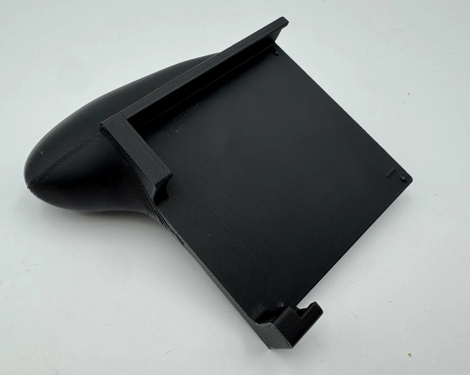 Phiên bản Controller Grip cho Playdate không cần miếng đệm thêm: dùng các gờ nhỏ (nubs) ăn vào lỗ vít để giữ máy. Ôm khít đủ chắc khi dùng bình thường, nhưng vẫn tháo ra dễ với lực nhẹ.