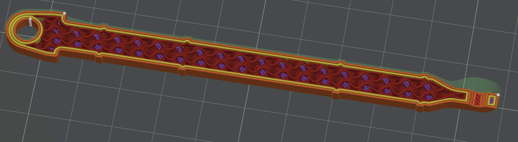 Vật liệu: TPU (mình dùng 95A, nhưng độ cứng (durometer) nào cũng được; chỉnh số outer walls để thay đổi độ cứng)