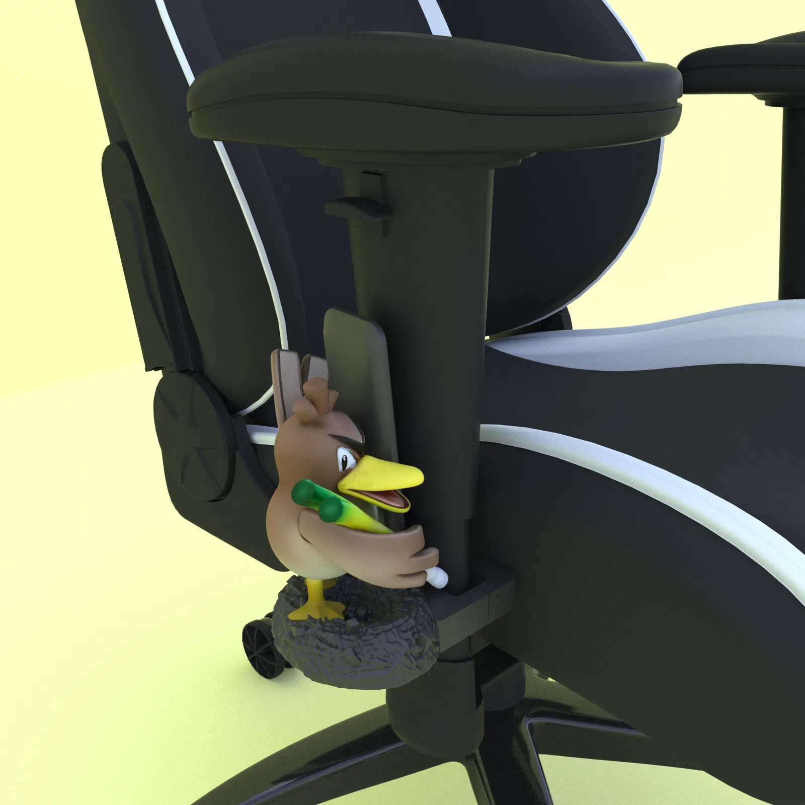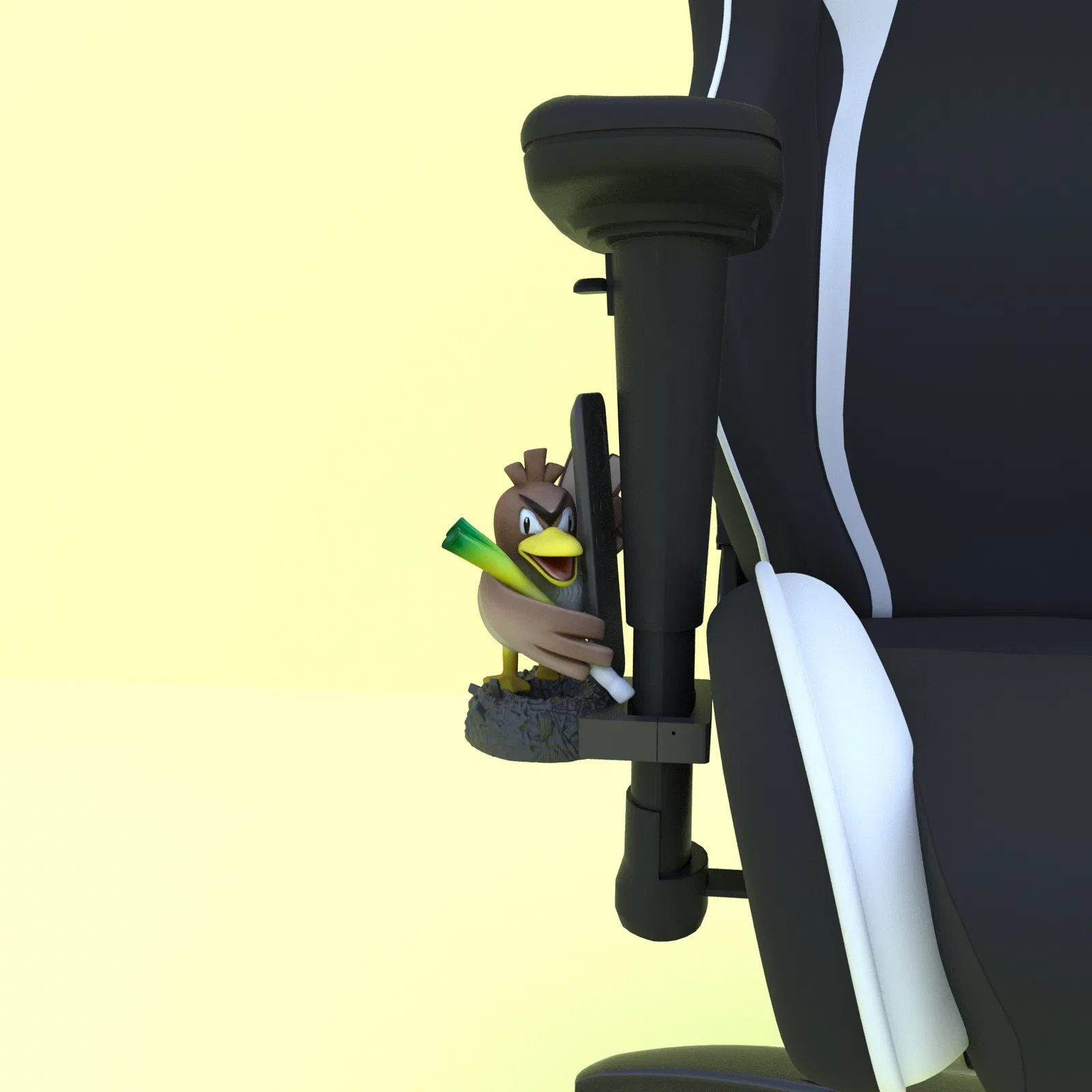 Mẫu 3D in được: giá đỡ remote gắn lên tay vịn ghế lấy cảm hứng Farfetch'd (Pokemon). Phù hợp setup gaming/gaming chair, giúp để remote gọn gàng. Có sẵn file STL để tải và in.