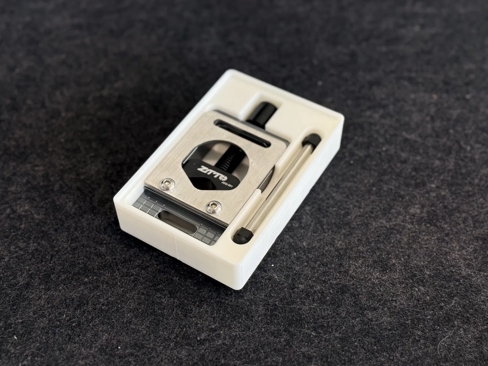 Hộp Gridfinity kích thước 2x3 giúp cất gọn dưỡng cắt ống cổ ZTTO JGQ-001. Thiết kế vừa khít, để Jig nằm ngăn nắp trong ngăn kéo/khay đồ nghề, dễ lấy ra sử dụng khi cần.