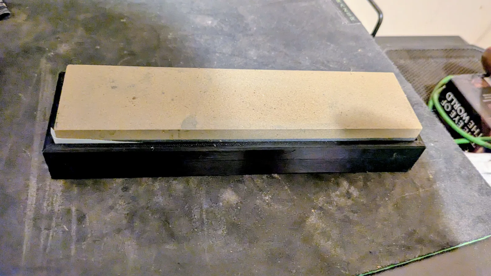 Vừa với đá mài Smiths 8" tiêu chuẩn. Mình thêm các lỗ để giảm thời gian in. Phần case có đủ chỗ để kẹp thêm một miếng strop mỏng.