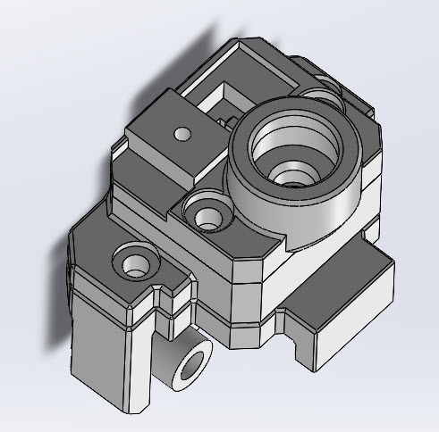 Voron 2.4, Dragon Burner với HGX extruder, đã gắn adapter. Lưu ý lỗ đường filament ở giữa có nhét một đoạn ống PTFE ngắn, đầu vào được cắt vát hình nón.