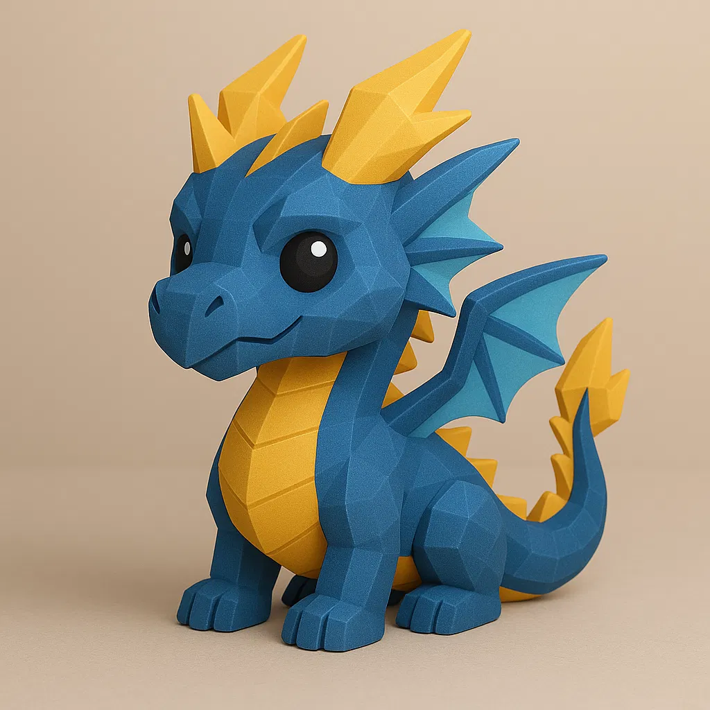 Mini Thunder Dragon là mẫu rồng mini low-poly mạnh mẽ, gợi năng lượng bùng nổ như cơn giông. Cần supports cho cánh/đuôi/gai đầu; in đẹp với PLA vàng hoặc vàng kim, layer 0.12–0.16 mm, filament bóng/silk.