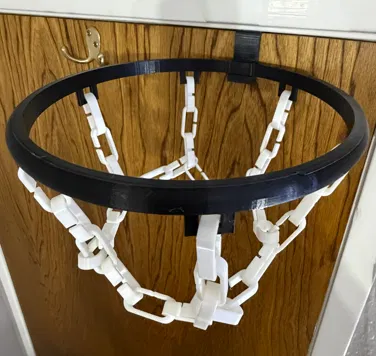 Mẫu vòng rổ gắn lên cửa kèm lưới xích. Gồm 1 Rim, 1 DoorMount và nhiều mảnh Net (mình in 36 mảnh, có thể tuỳ chỉnh ít/nhiều). Nên dùng bóng rổ nhẹ hoặc bóng rổ in 3D.