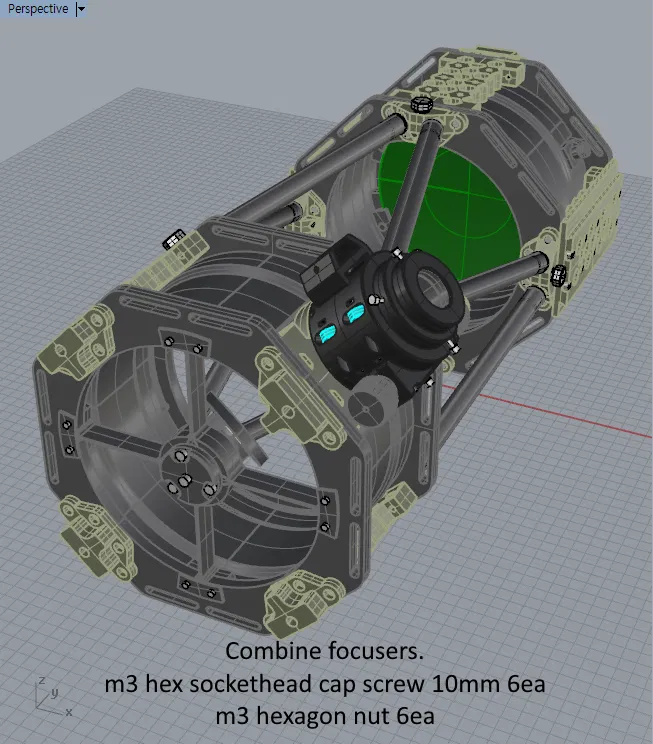 Mẫu kính thiên văn Newtonian truss carbon 8 inch, dễ chỉnh gương phụ kiểu Betty, dùng thanh dovetail Losmandy & vixen. Hỗ trợ gương chính D203 F750/F800 và gương phụ 70mm; in được với máy 200x200 (khuyến nghị 300x300).