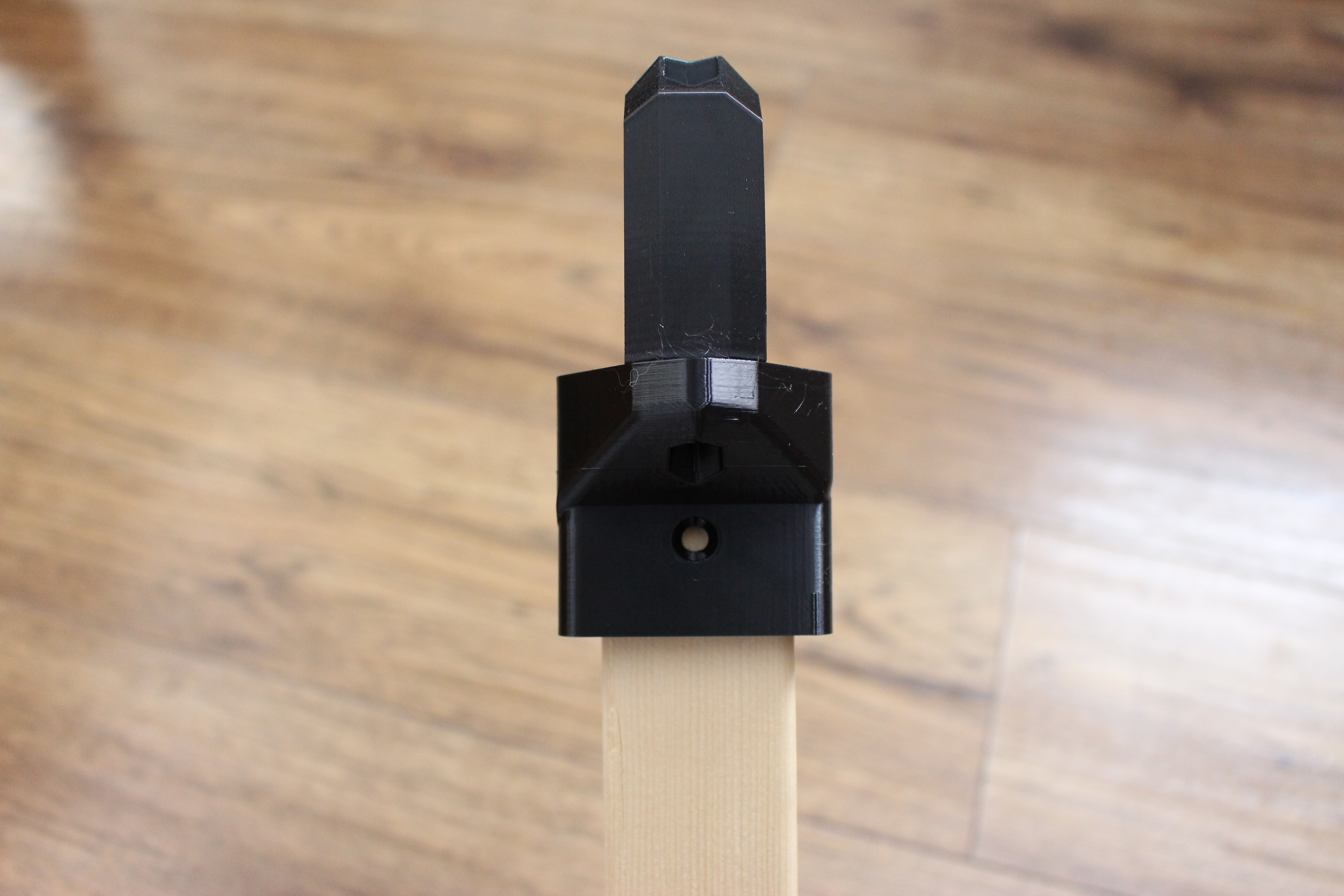 Adapter để dùng với handle của BaGooN, gắn lên đầu thanh gỗ 2x4. Dùng vít #8 và đai ốc M5; khoảng cách lỗ 122 mm để khớp thiết kế. Có sai số nhẹ giữa các cây 2x4, có thể chà nhám để vừa.