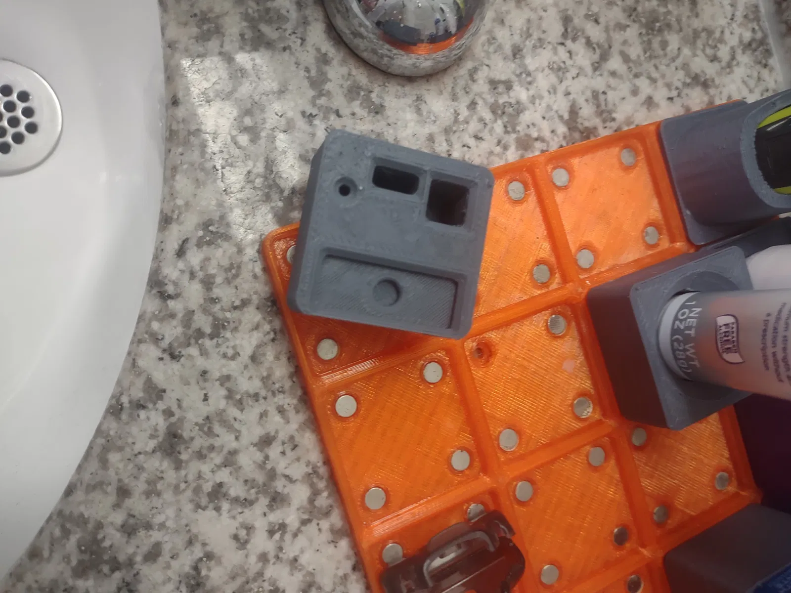 giữ một cặp nhíp, máy cắt biểu bì, kim và Philips OneBlade. Ngoài ra còn có một sự nắm giữ cho một nam châm giữ oneblade tại chỗ nếu muốn. Lỗ nam châm là 6 mm x 2 mm, in hạnh phúc!
