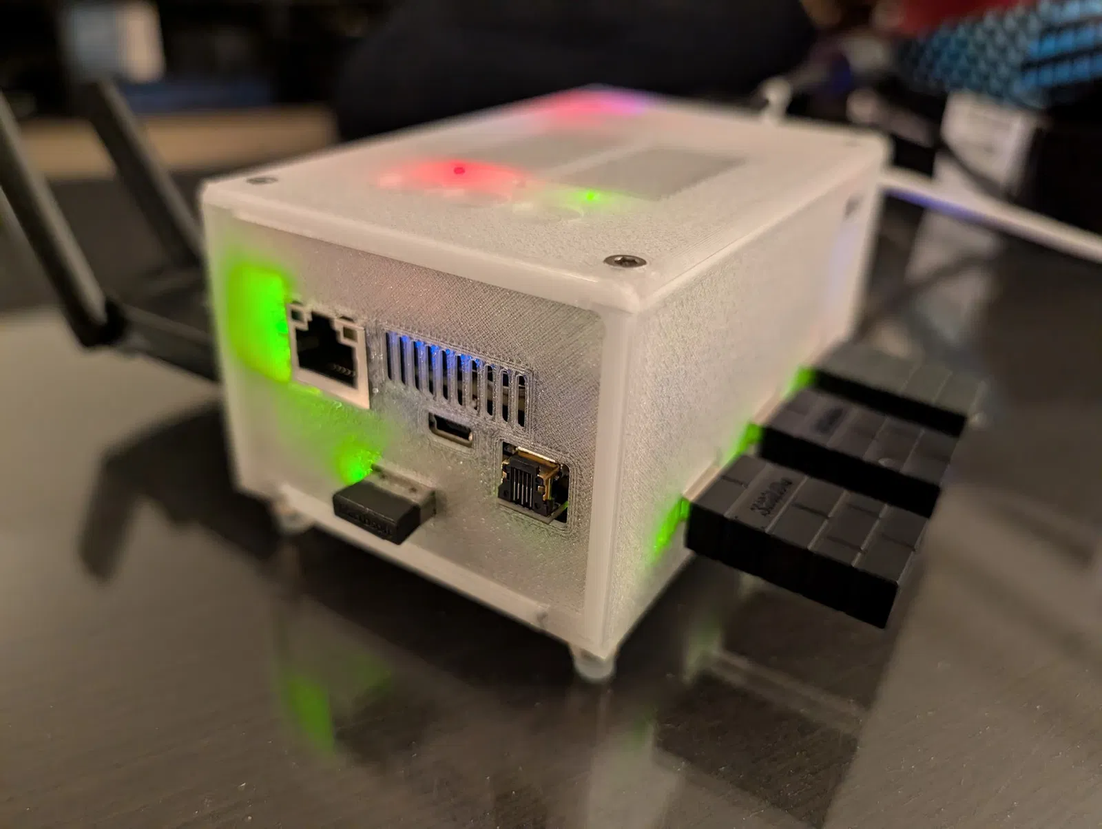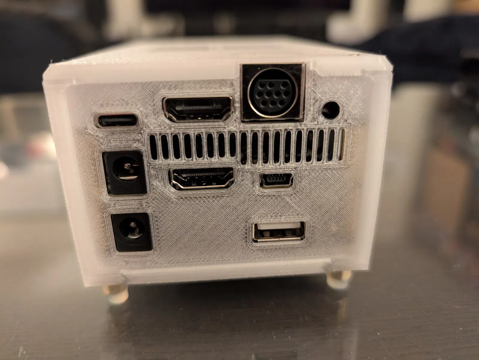 Mình build stack MiSTer với DE10-Nano, IO Direct Board và USB hub board (cũng của MisterAddons). Các file sẵn có trước đó canh không đúng lắm, nên mình đã dời/chỉnh một số vị trí để fit tốt hơn, đồng thời thêm tấm side plate mới cho phía nguồn.