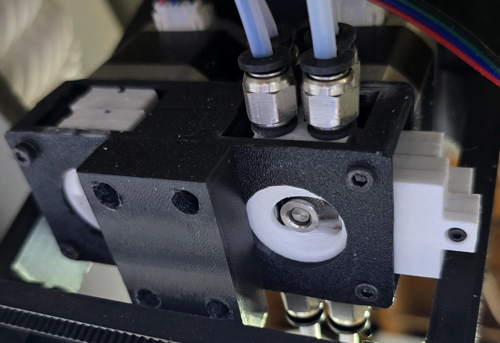 Mình rất thích loại fitting này vì nó cho phép đẩy ống PTFE xuyên qua hoàn toàn, giúp ống nằm sát nhất có thể trong 3DC để đường đi filament mượt hơn.