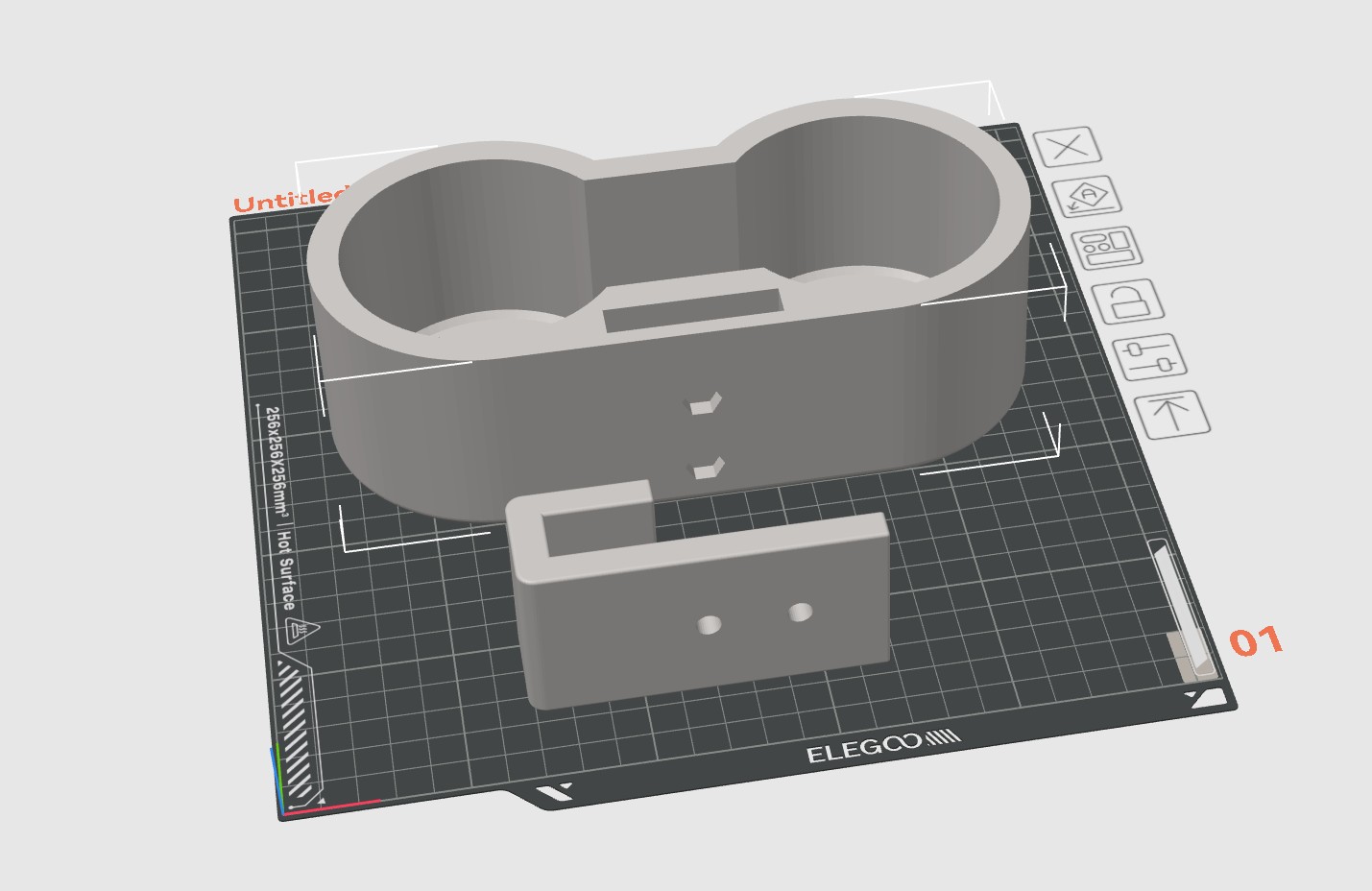 Một thiết kế nhanh mình làm cho chiếc Dmax đời đầu, kẹp (clip) vô phía sau bệ tỳ tay/centre console. Không dùng được nếu centre console của bạn có nắp. Bạn cần 2 con bu-lông M6x20 đầu socket (socket head). Nên in bằng ASA hoặc vật liệu tương tự, vì PLA để trong xe dễ bị hư/biến dạng do nhiệt. Phần cupholder có thể in không cần supports, chỉ cần đặt phẳng mặt đáy xuống. Phần mount thì nên in đứng trên cạnh mỏng (skinny side) để đạt độ bền đúng. Thiết kế này vừa dễ với đa số ly/cốc to, kể cả Yeti. Dù mình thiết kế cho Dmax nhiều hơn, nhưng thực tế khá là universal và phần mount cũng chỉnh sửa rất dễ.