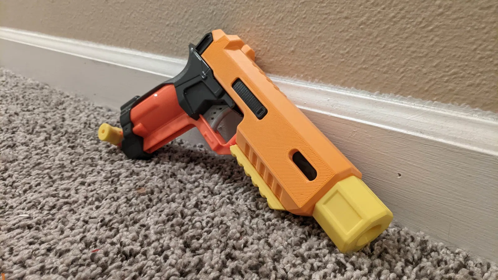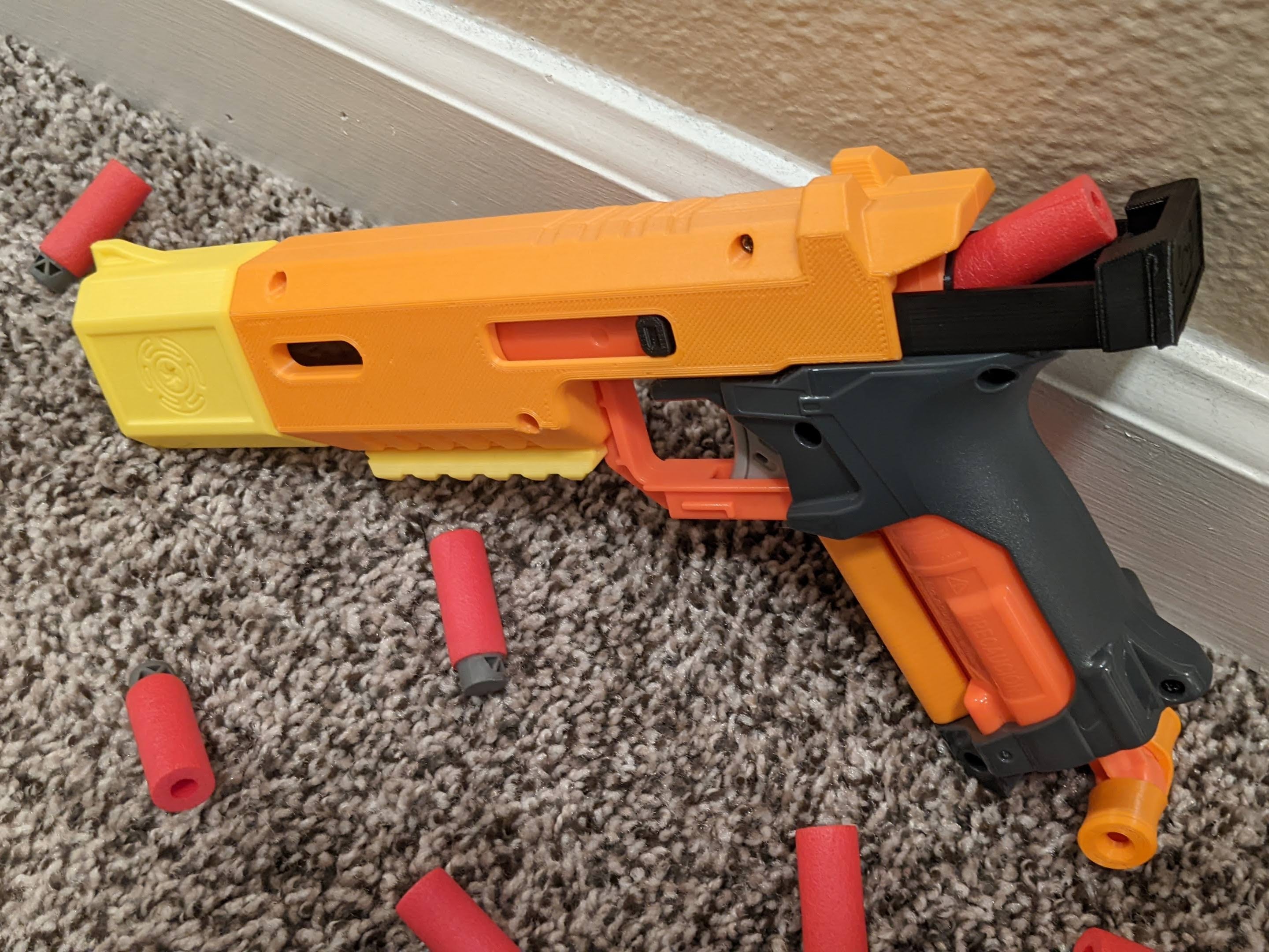Mod Hecate biến cây Nerf Bigshock thành một blaster inline clip bắn 4 phát, nạp đạn từ phía sau! Bản này dùng short dart nửa chiều dài (half-length), và có thể đạt hiệu năng trên 100fps với rất ít công sức.