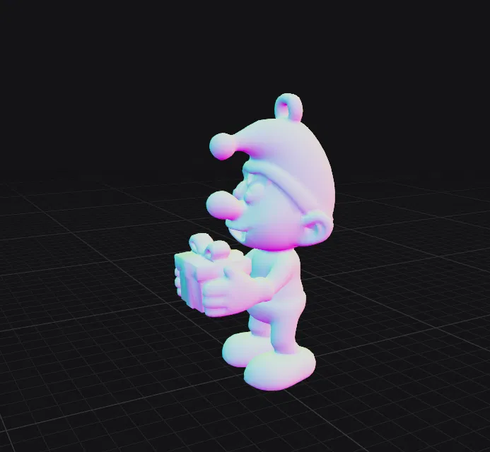 Mẫu 3D Smurf đội mũ Noel, tạo dáng vẫy tay dễ thương để in 3D. Tối ưu cho FDM và resin, bề mặt mượt, dễ scale, phù hợp làm tượng trang trí, ornament Giáng Sinh hoặc đồ trưng bày.