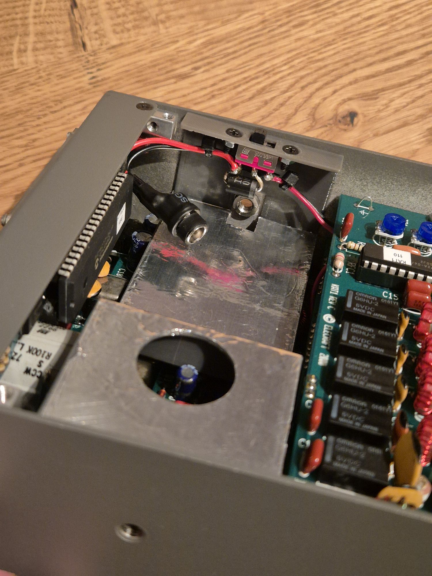 -Ngắt dây và lắp một ổ cắm DC (female 5.5 x 2.1 mm) vào vị trí của khay pin AA. (Dùng dây có cách điện tốt và ống co nhiệt)
