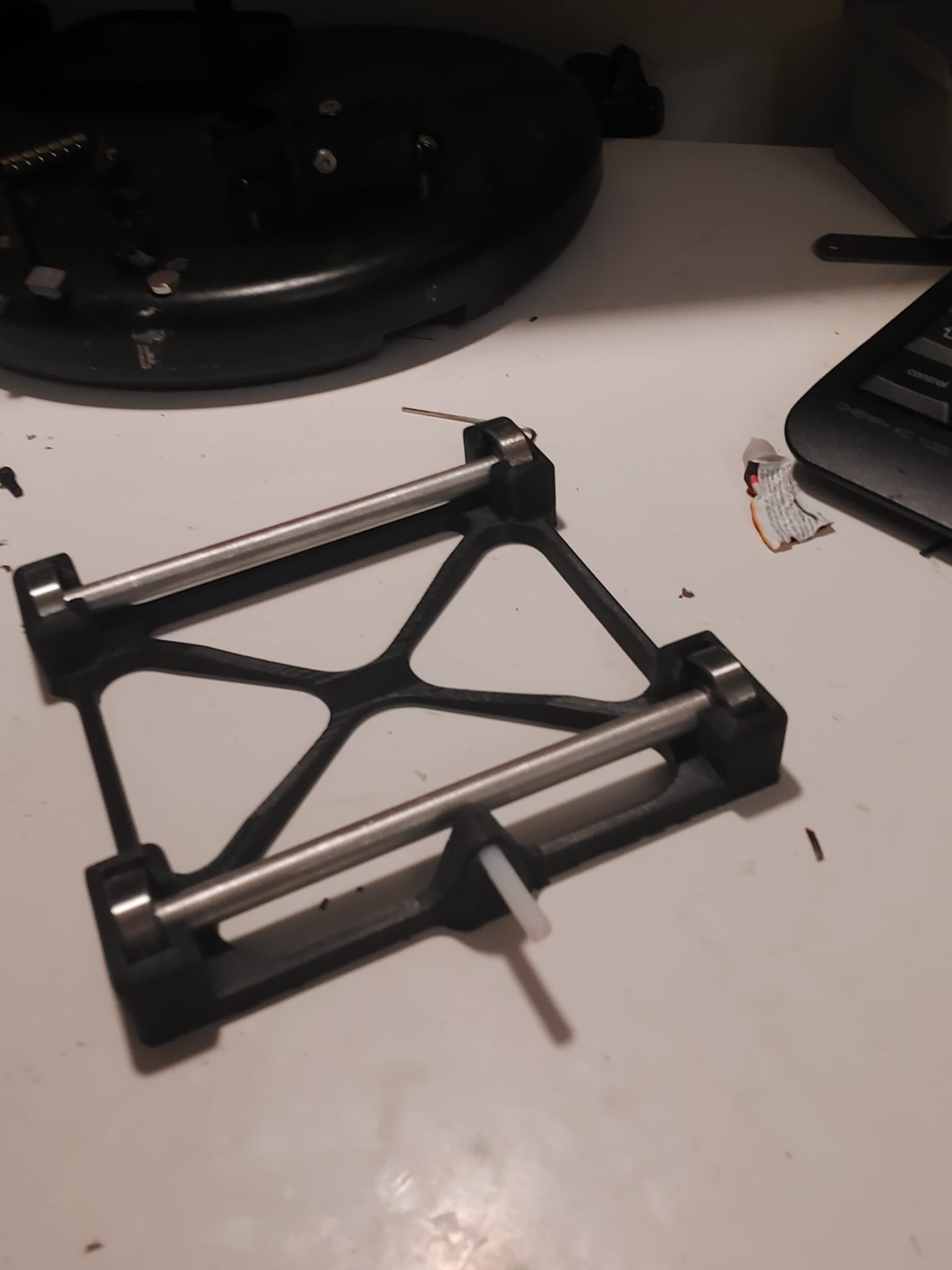 Giá đỡ cuộn filament dạng tối giản, có ống dẫn PTFE để dẫn filament gọn gàng. Yêu cầu 4 vòng bi skateboard (608) và 2 ống 8x120mm, phù hợp làm phụ kiện đơn giản cho máy in 3D.