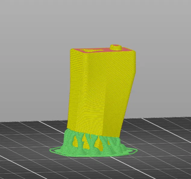 - Lưu ý: Bạn có thể muốn in nó ở một góc nghiêng nhẹ để phần trên in phẳng. Để làm điều này trong slicer của bạn, hãy dùng công cụ "align to bed tool" và chọn bề mặt cao nhất trên núm. Sau đó xoay mô hình 180 độ trên trục X hoặc Y. Cuối cùng thêm support hữu cơ/cây (xem hình)