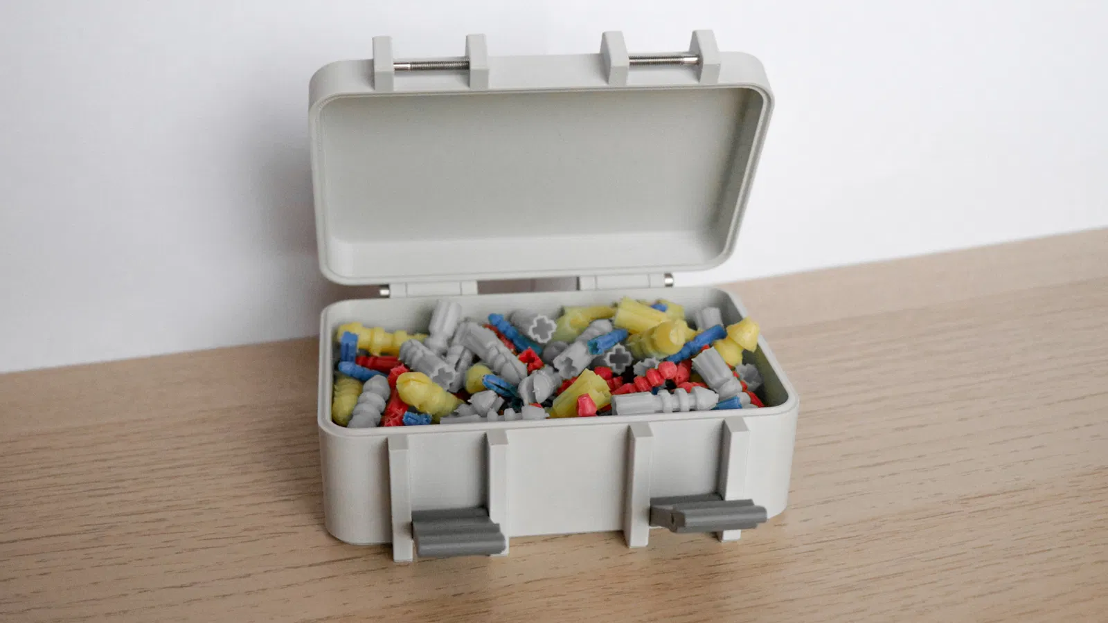 Một hộp lưu trữ snap-lock (khóa gài) in 3D tiện dụng, thiết kế để sắp xếp đồ dùng hằng ngày. Mẫu toolbox này dễ in, dễ lắp ráp, phù hợp để cất dụng cụ, linh kiện, đồ điện tử và các vật dụng thường dùng trong một hộp gọn gàng, bền chắc.