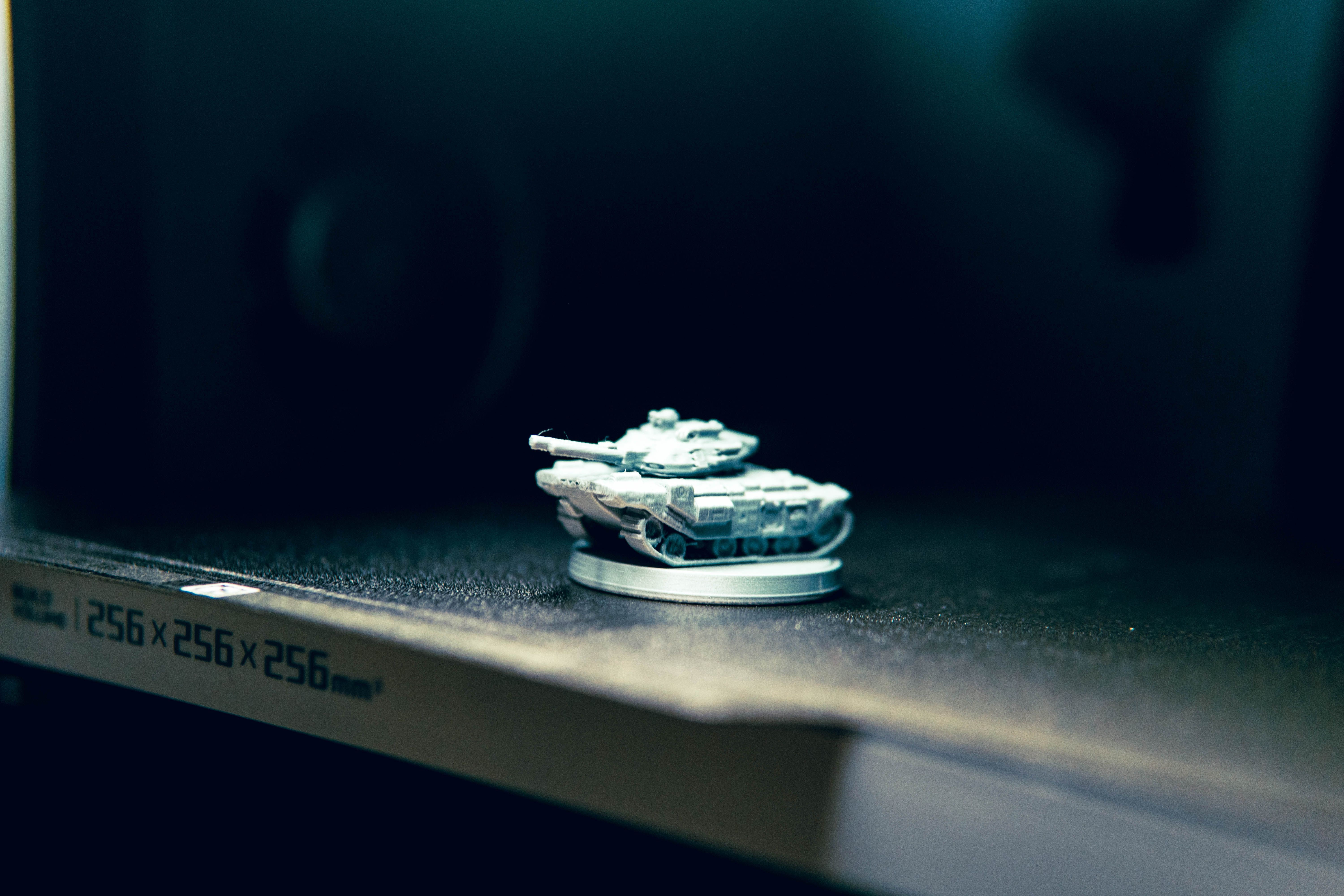 Hạ gục mọi đối thủ với xe tăng Aegis, trang bị cặp pháo Gauss xuyên giáp 45mm. Mẫu được in thành 3 phần và dán lại với nhau để đạt độ chi tiết tốt nhất.