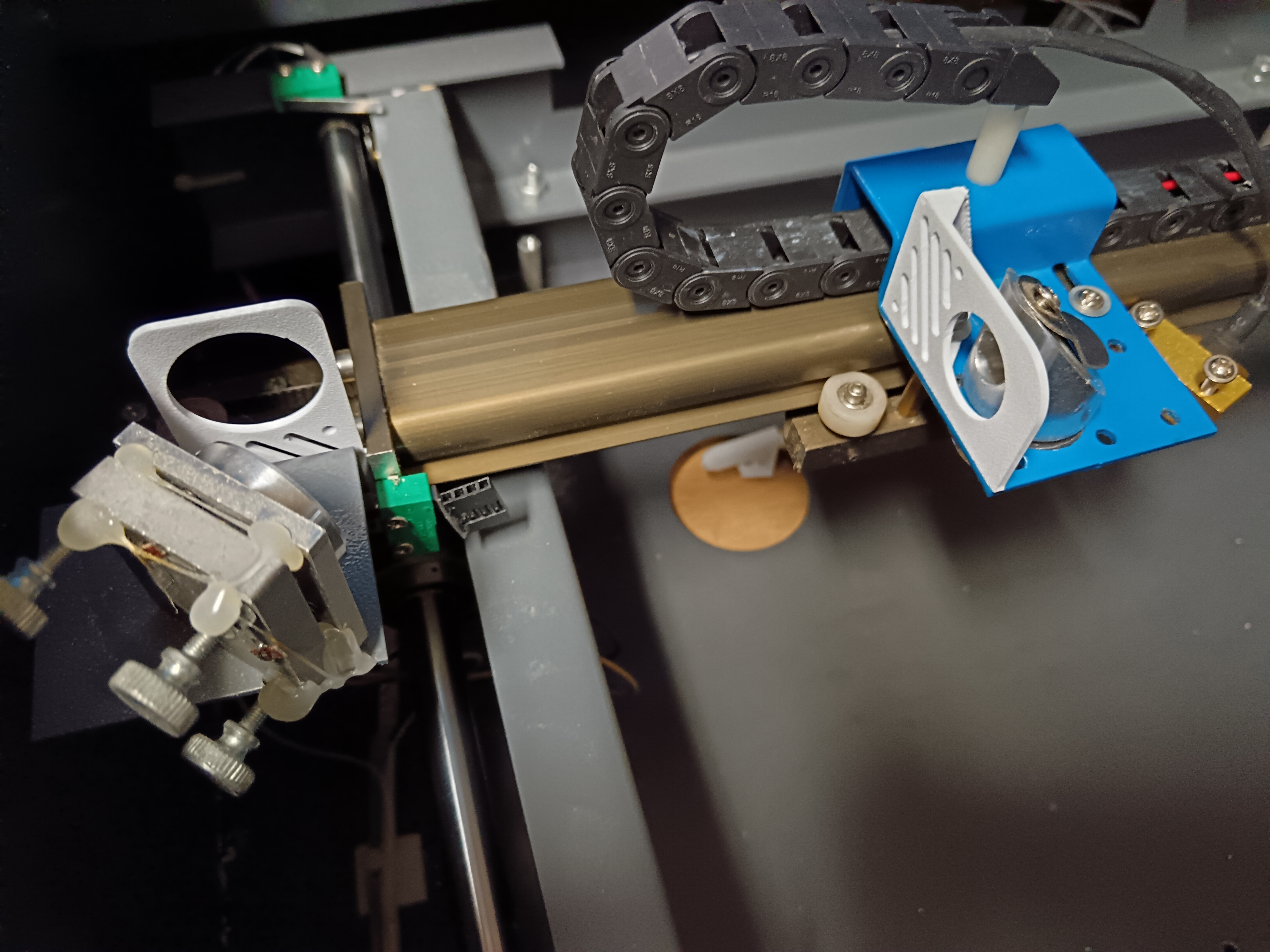 Bộ beam alignment target cho máy laser K40, dùng cho mirror 2 & 3 để giữ băng keo khi calibration, tránh cháy keo và làm bẩn gương. Gắn bằng ốc sẵn có gần vị trí gương. Có file FreeCAD và mẫu 3MF.