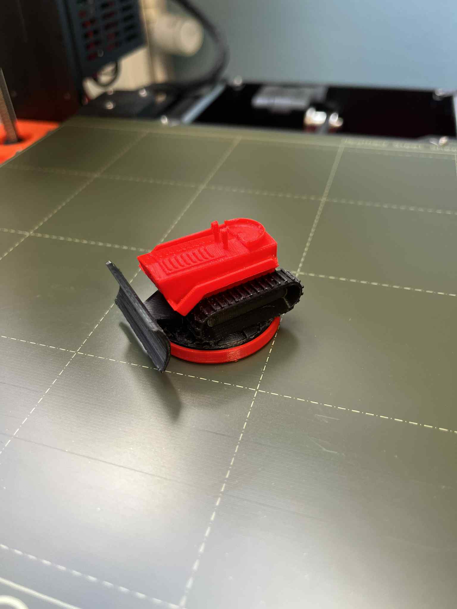 MINI-Dozer dành cho trò Crash Derby Game, lấy cảm hứng từ Struck Corporation MINI-DOZER® MD50. Thiết kế tối ưu để in đẹp: thân in nghiêng 45° với grid support, có sẵn g-code variable layer heights và in PLA ổn.