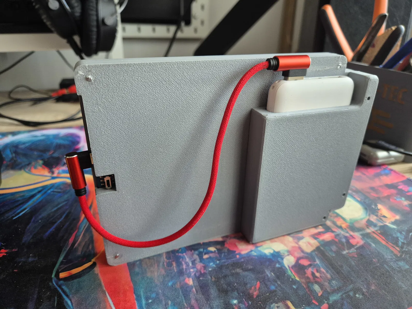 Powerbank là loại rẻ và nhỏ, 5000 mAh 12W của Alza (không cần mạnh đâu, vì màn hình ăn ít điện và điện áp thấp)