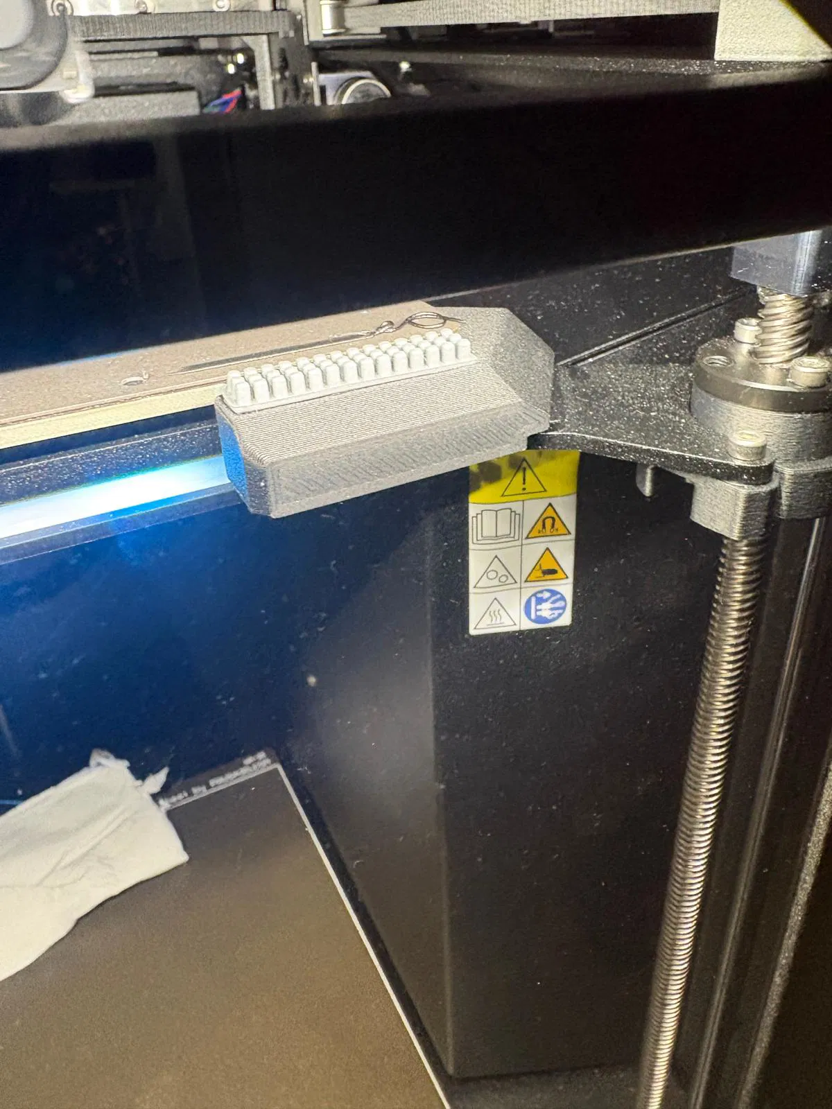 Mình làm món này để hỗ trợ cho tấm Cryogrip Glacier plate mới của mình. Mình đặt nó ở bên phải để quy trình wipe nozzle không làm đầu in đụng vào camera Unifi G4 của mình. Nghe đâu với Core One+ trở lên thì đặt bên phải là hợp lý hơn, có vẻ bên trái sẽ bị vướng cơ chế mở cửa thoát gió (vent opening mechanism)?