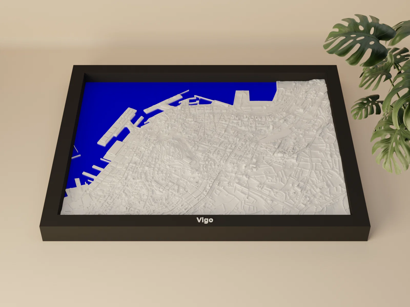 Bản thu nhỏ địa hình (topographic) in 3D của Vigo - 🇪🇸 Tây Ban Nha