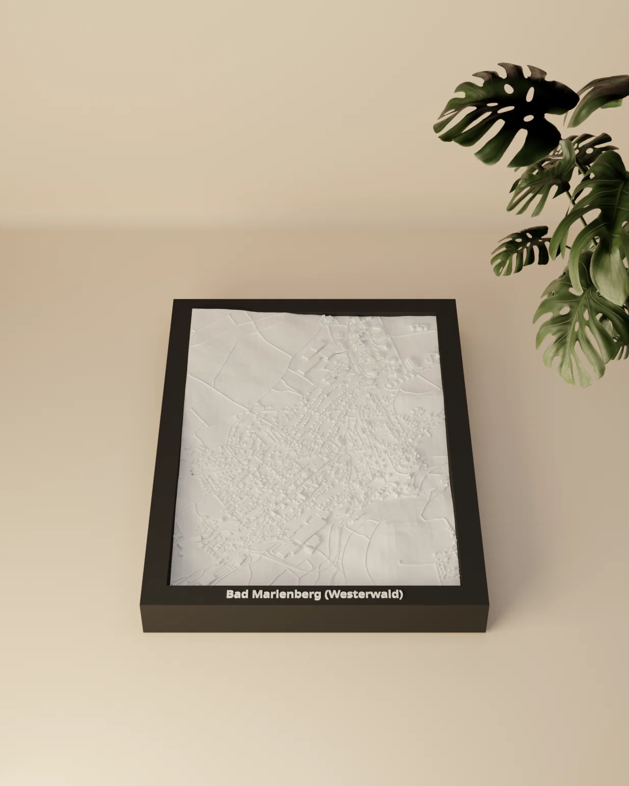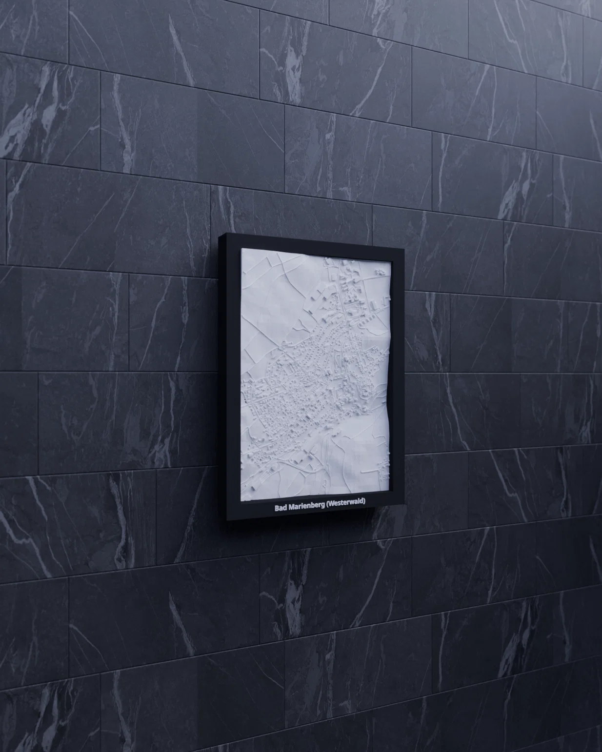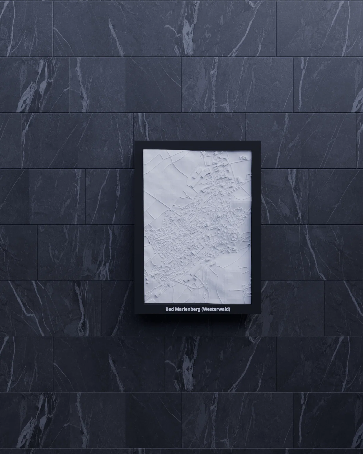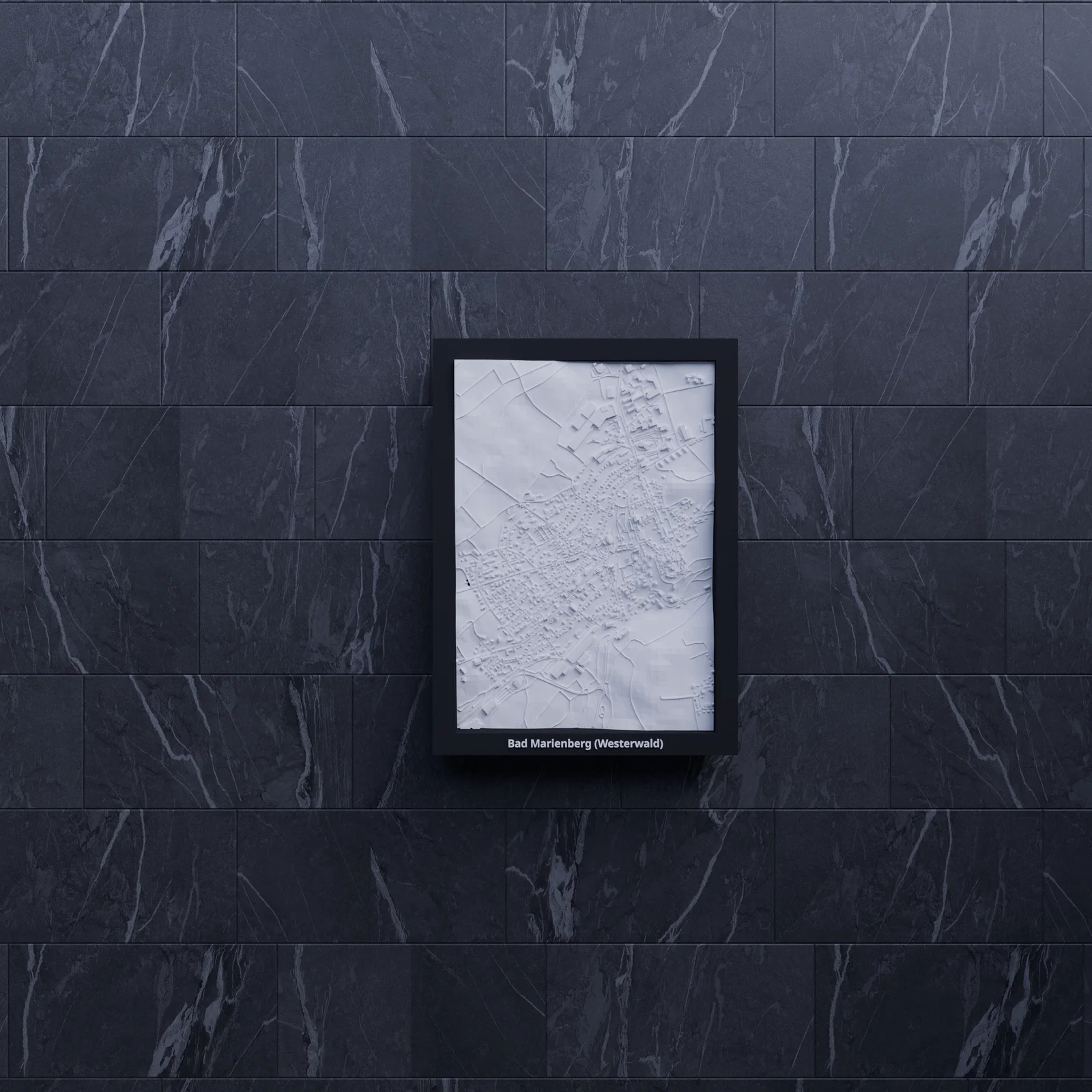 Mô hình thu nhỏ địa hình 3D của Bad Marienberg (Westerwald), Đức, dựng từ dữ liệu địa lý thực. Kích thước 119.5 × 170.5 mm, tỷ lệ ~12025:1; có nhiều lựa chọn frame và hướng dẫn lắp ráp.