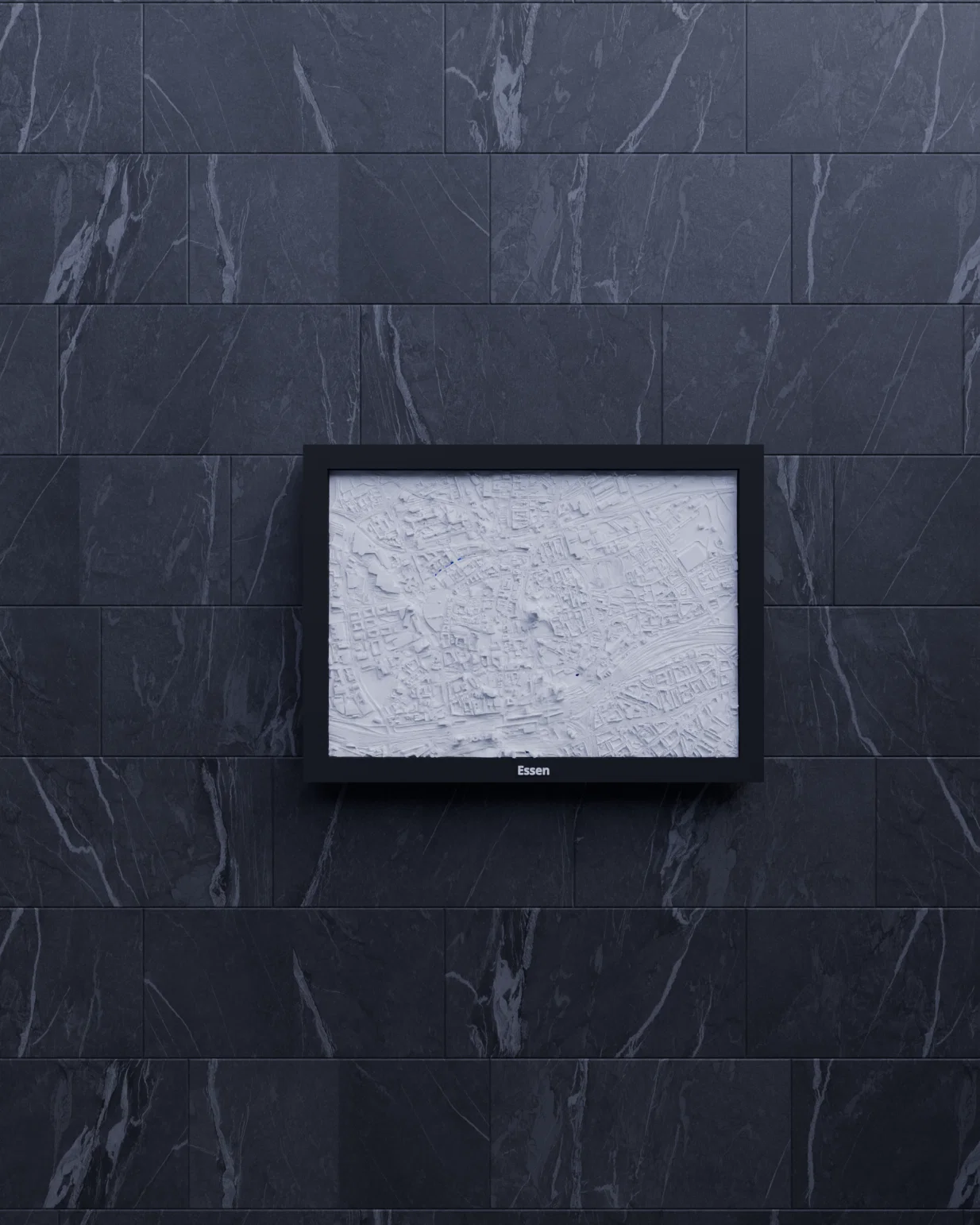 Mô hình địa hình thu nhỏ 3D tái hiện khu vực Essen (Đức) theo dữ liệu địa lý, quy đổi từ 2.820 km x 1.971 km xuống 170.5 x 119.5 mm (~16537:1). Có nhiều khung kèm lỗ treo, phù hợp decor hoặc học tập.