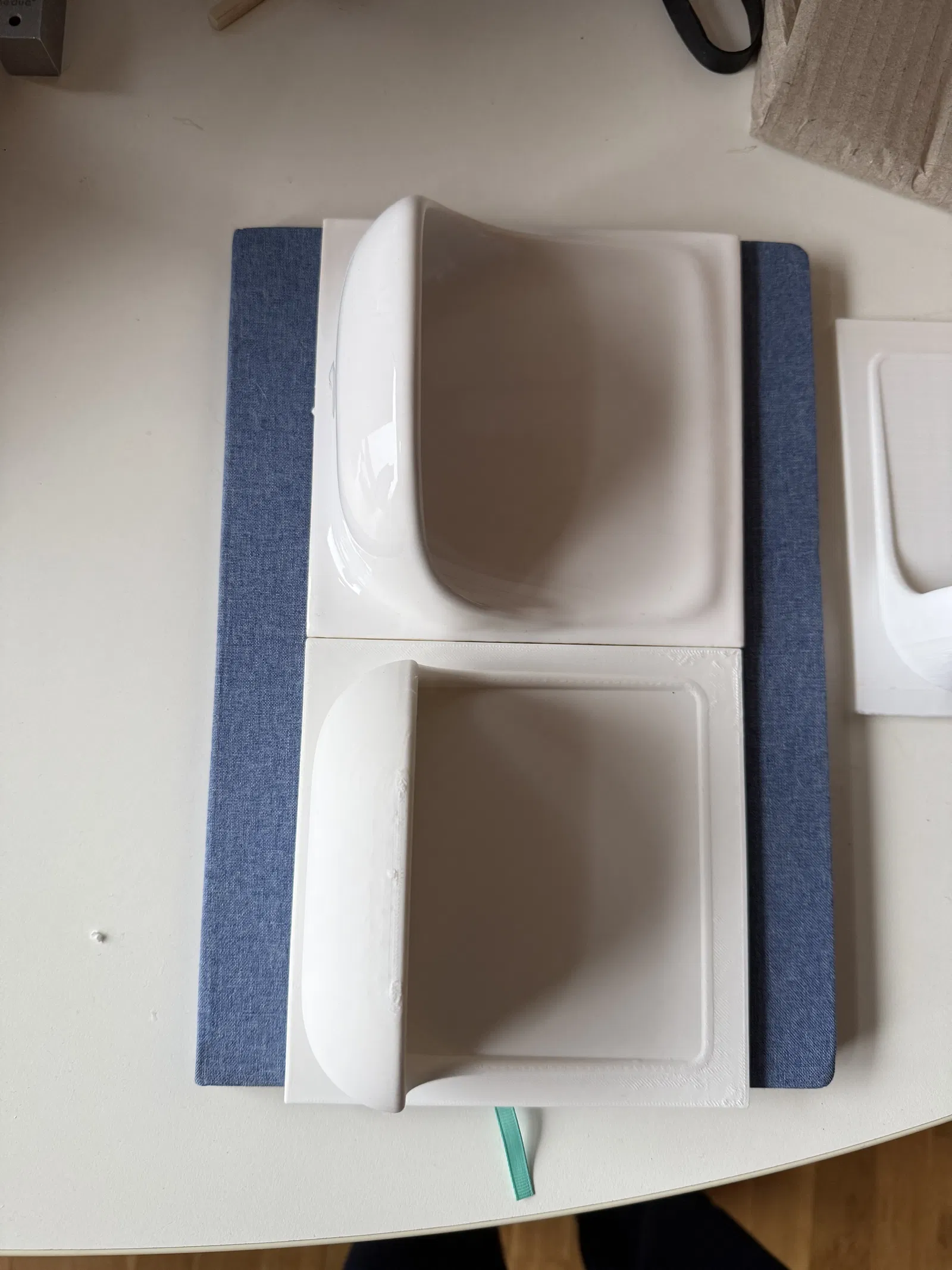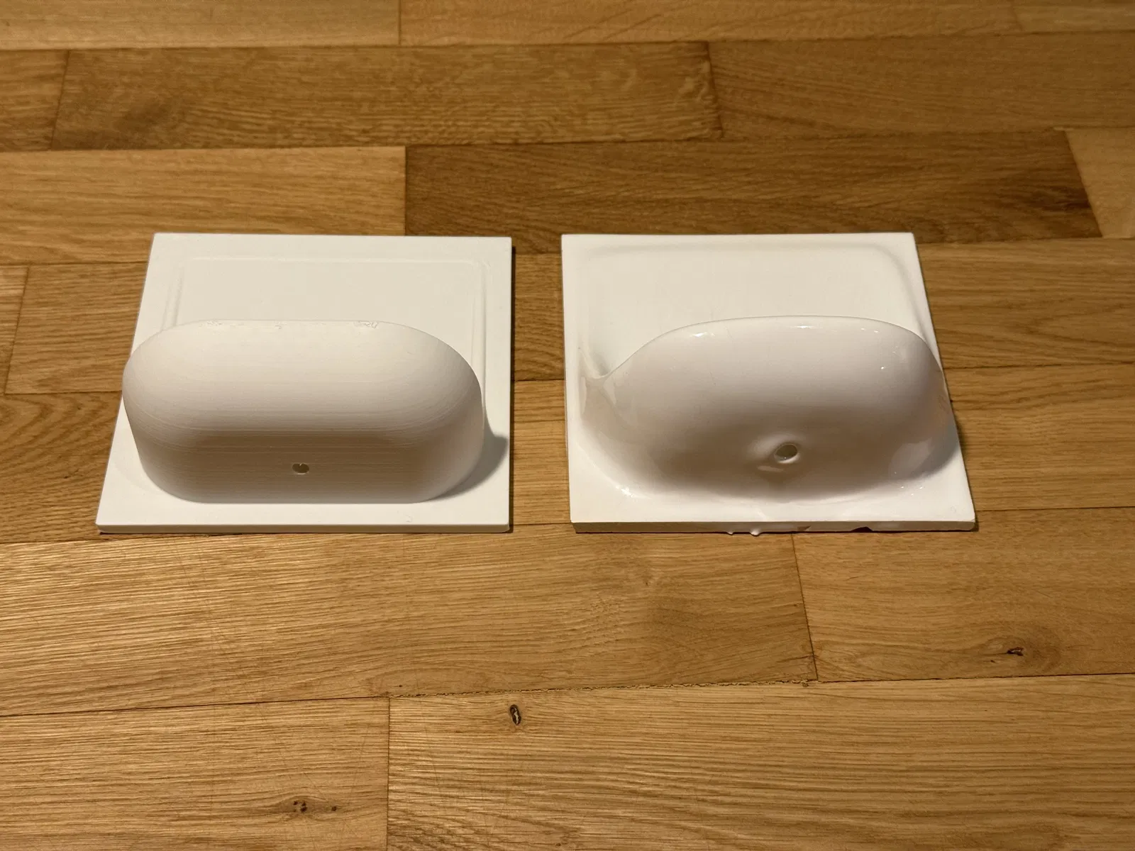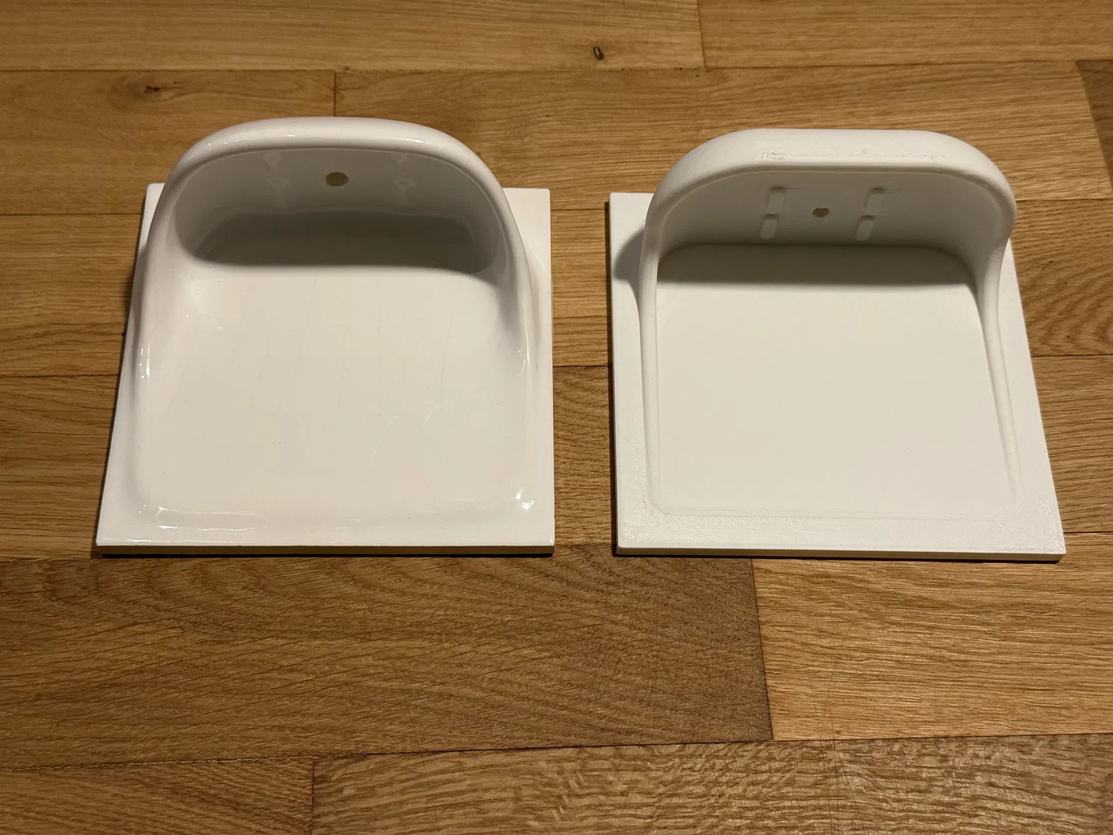 Antje đã nhờ mình làm một mẫu gạch phòng tắm có khay đựng xà phòng, lấy cảm hứng từ một mẫu cụ thể—trông tương tự nhưng không giống y hệt. Độ dày của viên gạch đã được giảm xuống còn 6 mm.