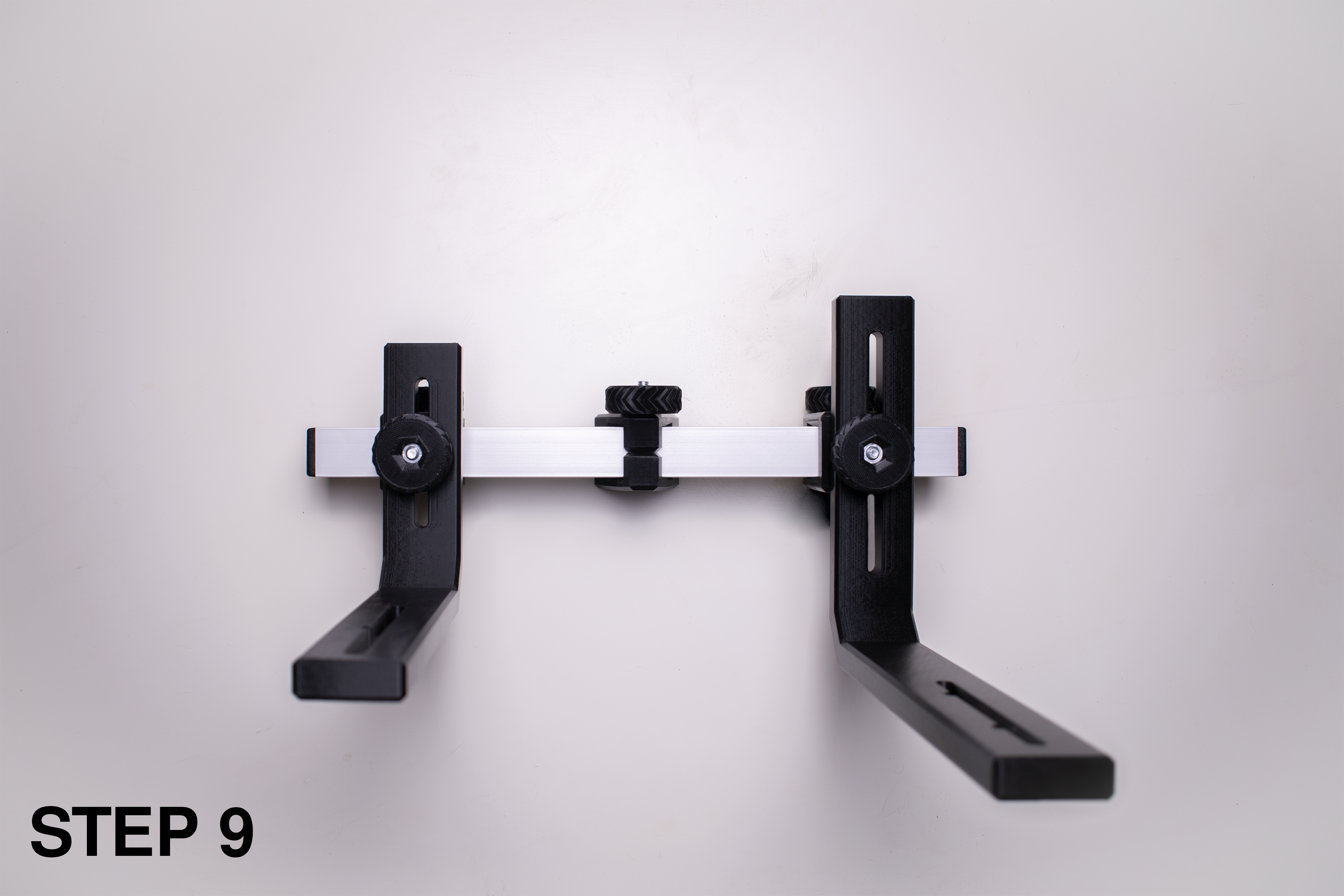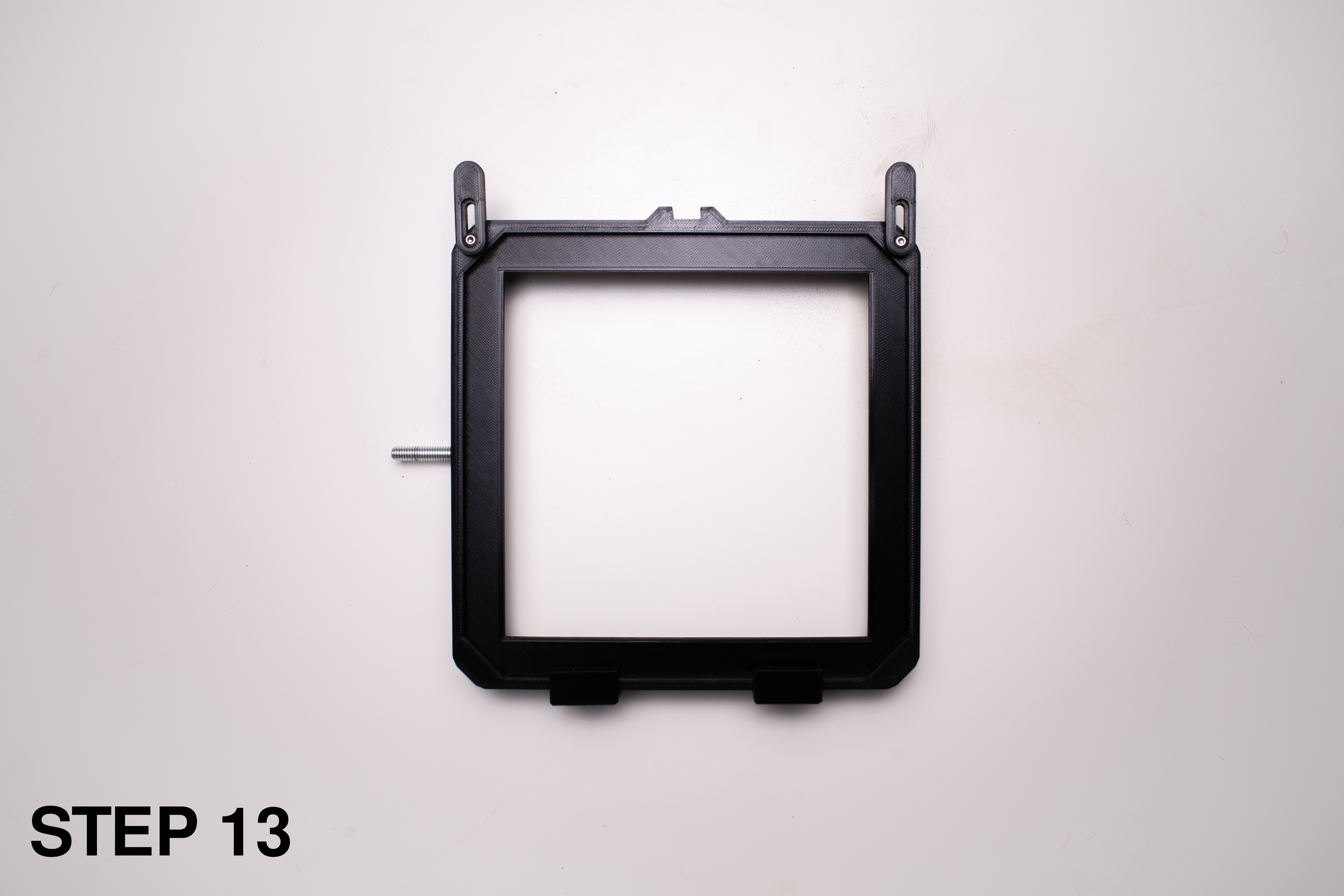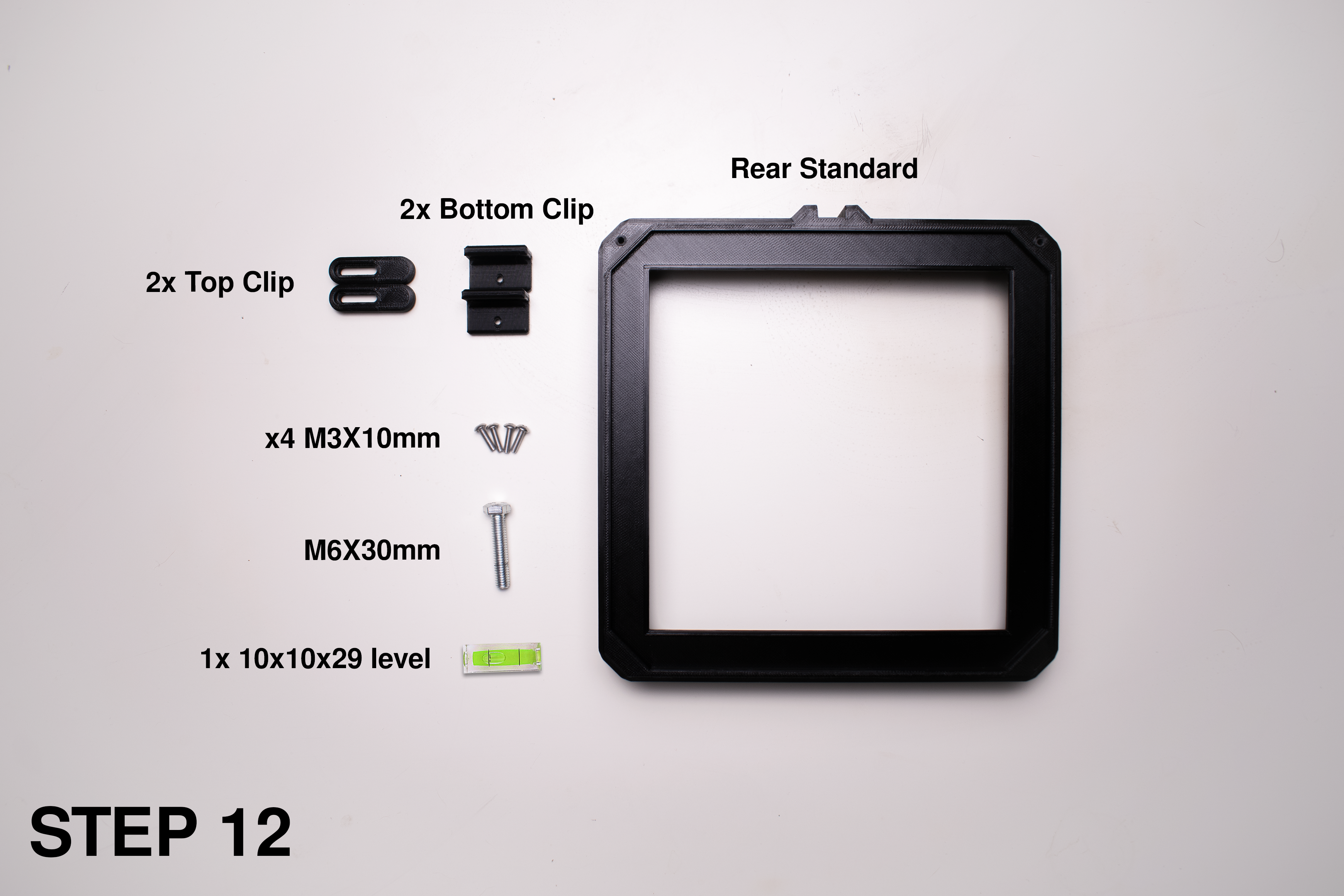 Lưu ý: Mình không có sẵn spirit level nên trong các hình khác sẽ không thấy. Để gắn thì chỉ cần dán vào các khe ở phía trên standards.