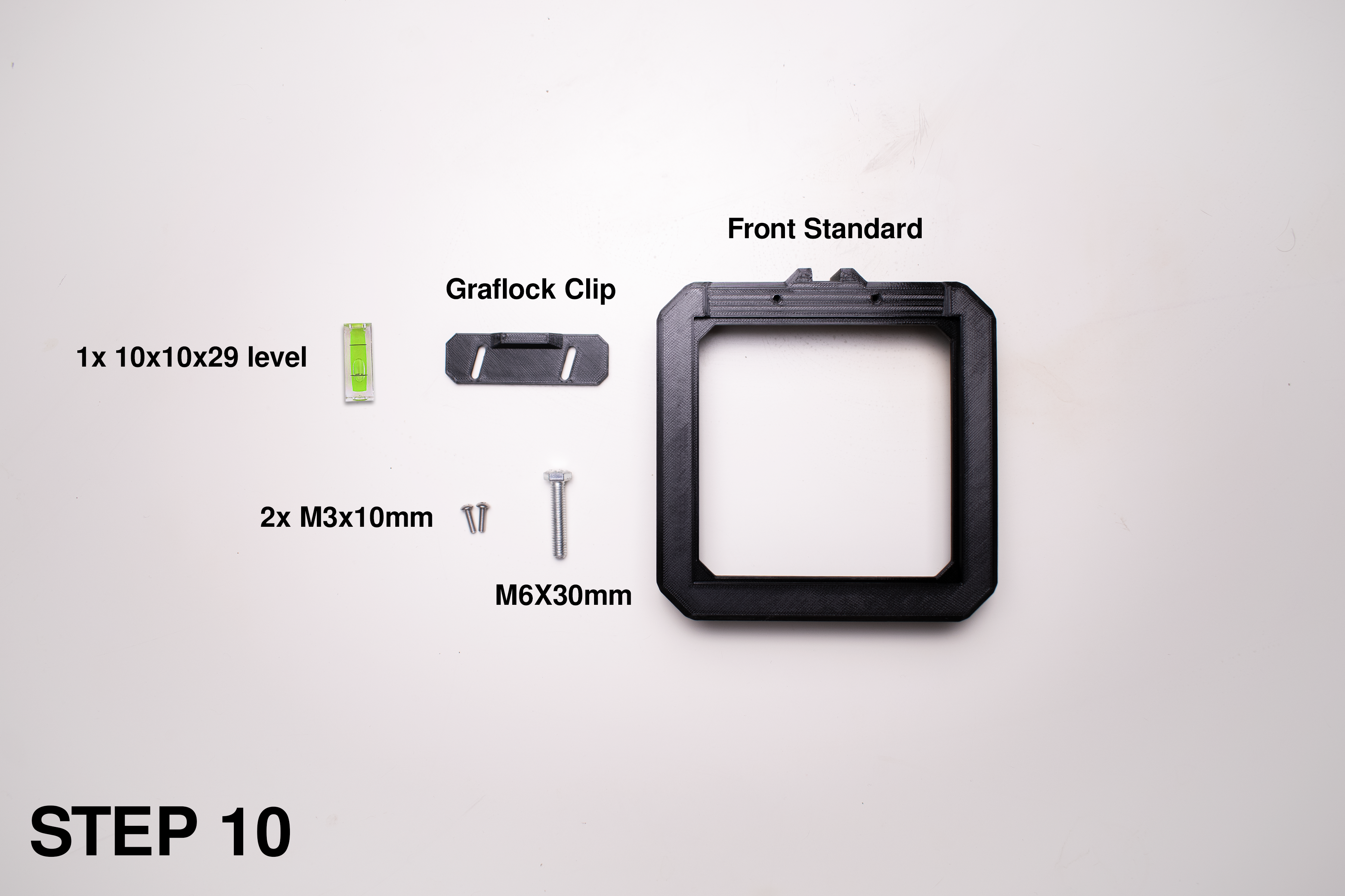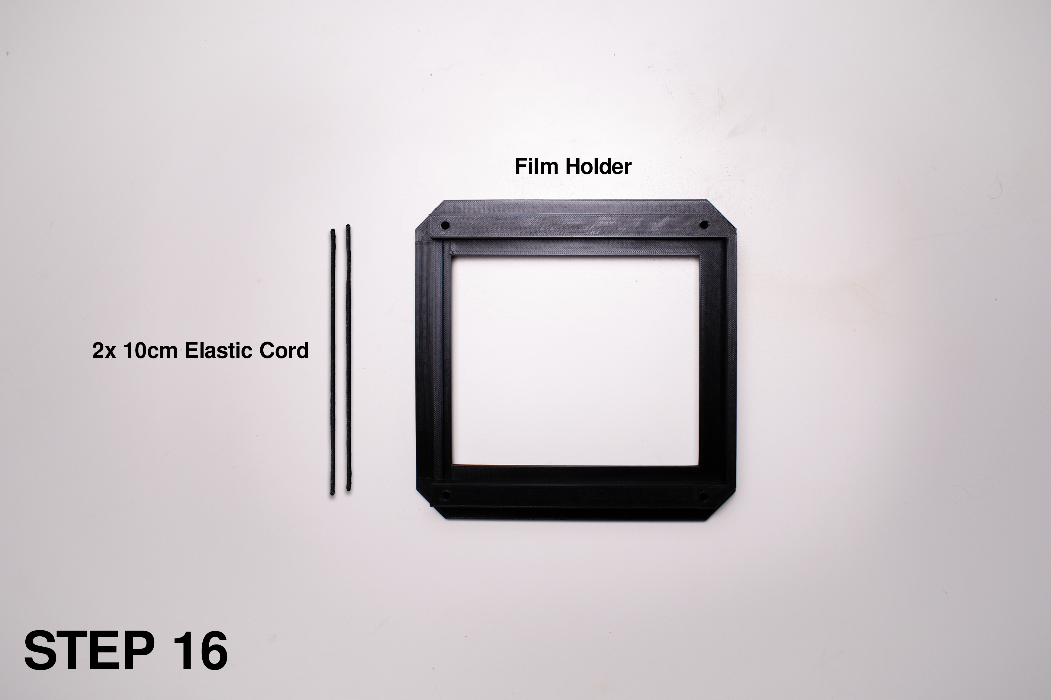 Tất cả model đều được cung cấp sẵn theo hướng in tối ưu, không cần support. Các phần sau cần in màu đen: Front Standard, Rear Standard, Film Holder.