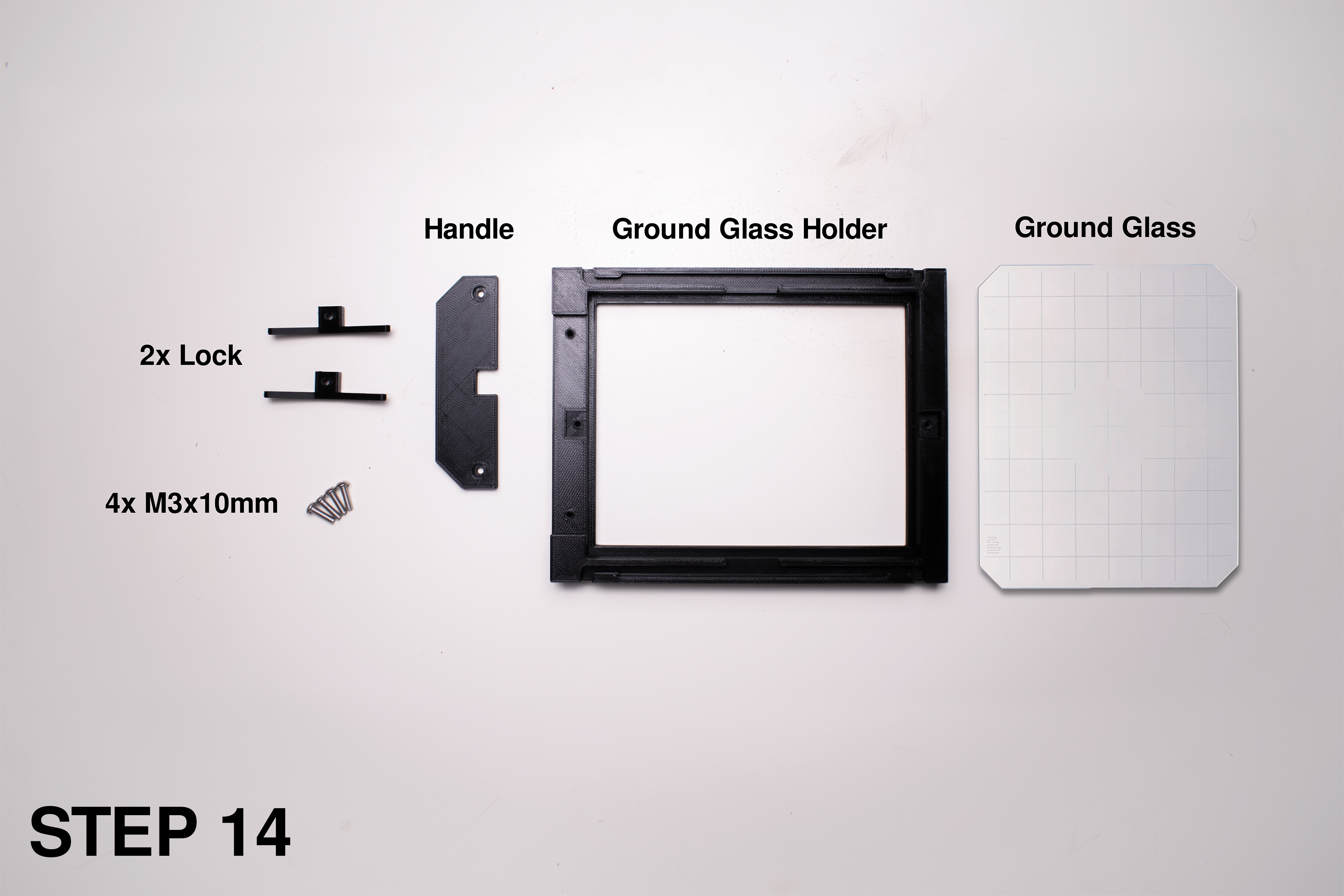 Bellows và ground glass có thể tự làm, nhưng mình khuyên thật lòng là nên mua từ Standard Cameras, vì nó là đồ thay thế “drop-in” và việc kiếm đủ vật liệu cần thiết không hề dễ. Đây là shop của họ: https://standardcameras.com/collections/all. Nguồn khác có thể là ebay hoặc http://www.custombellows.co.uk/. Cũng có thể in 3D bellows bằng TPU 95A: hoặc in 1 mảnh với máy in có trục Z 400mm (STL và bellows generator nằm trong mục files), hoặc in 2 phần theo thiết kế của Kiwi Tinkerer: