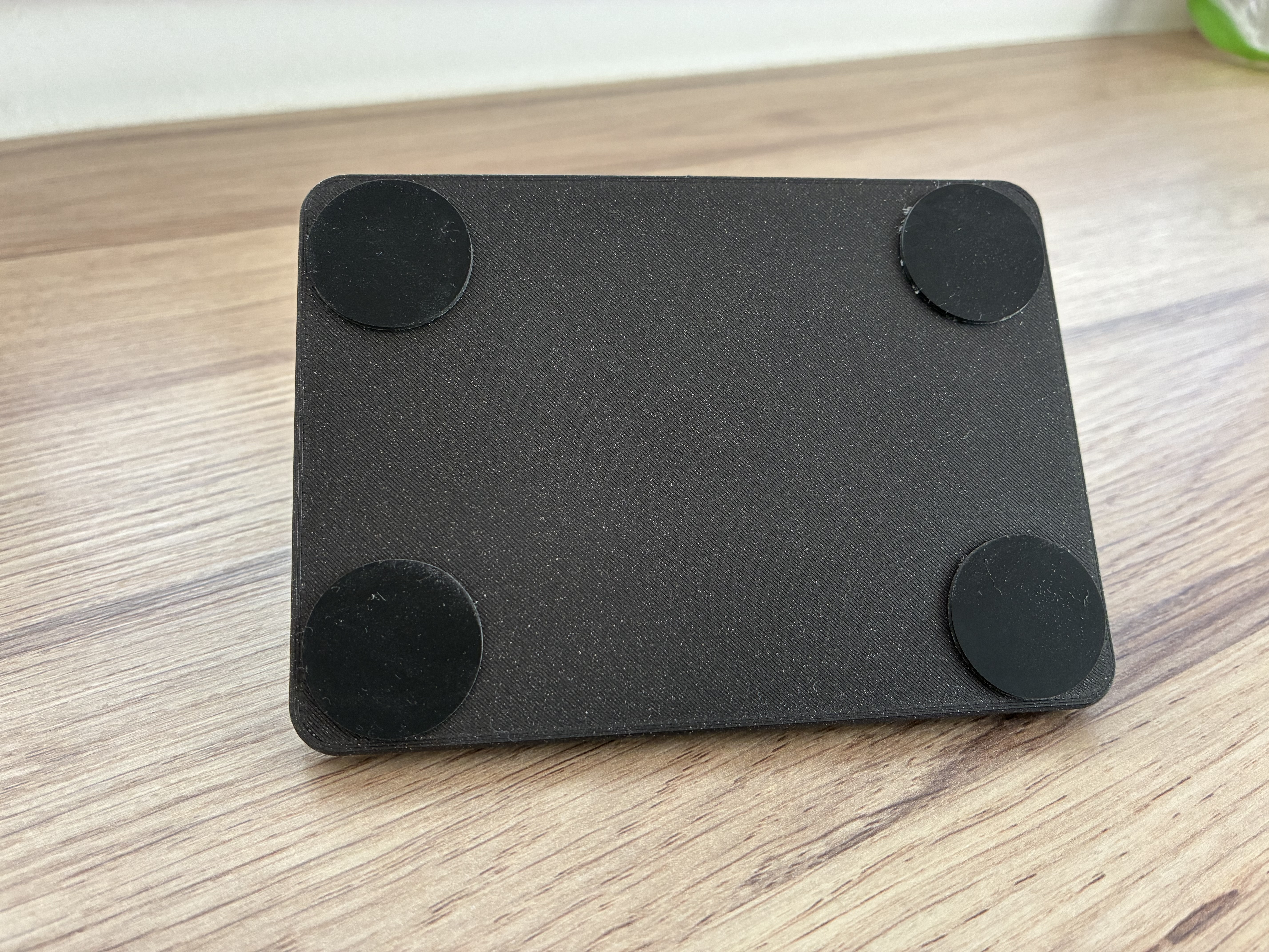 Mình dán thêm vài miếng đệm silicone ở đáy để khỏi bị trượt qua lại, mấy cái này mua trên Amazon dễ và rẻ.
