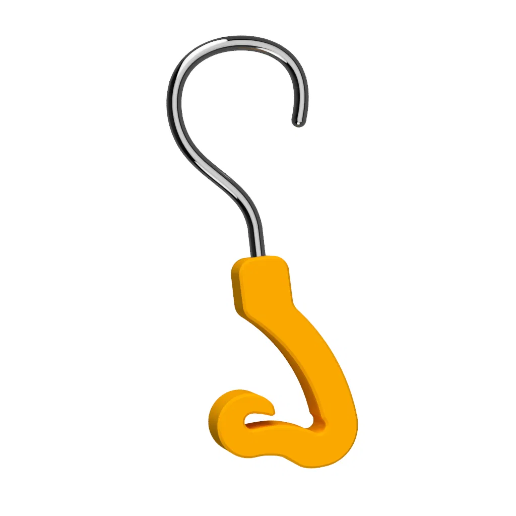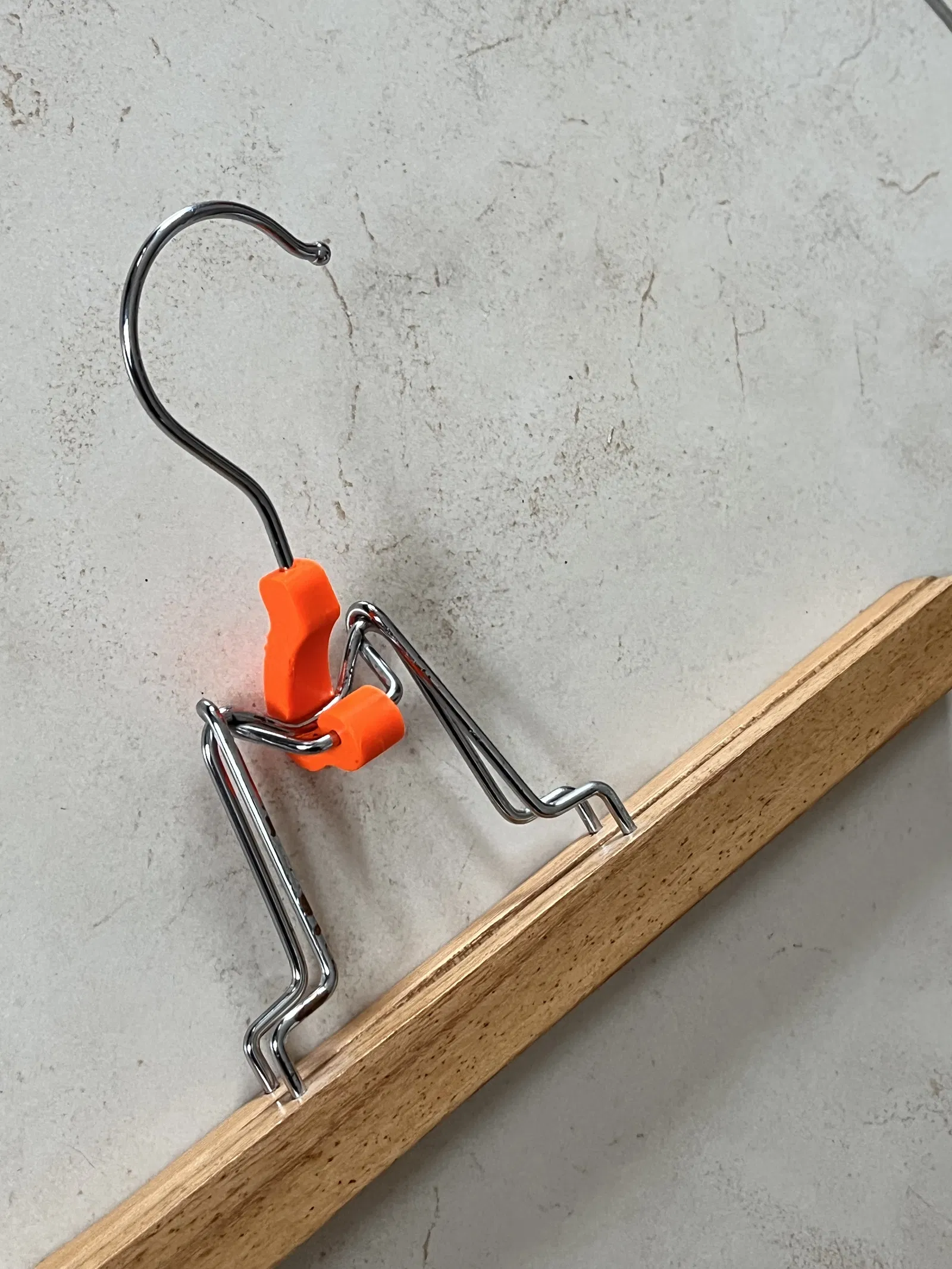 Hướng dẫn sửa phần đầu móc treo quần bị lỏng/gãy: hơ nóng phần trên của móc, đẩy vào hết cỡ và xoay khi nhựa còn mềm, rồi giữ đúng vị trí cho tới khi nhựa nguội và cứng lại.