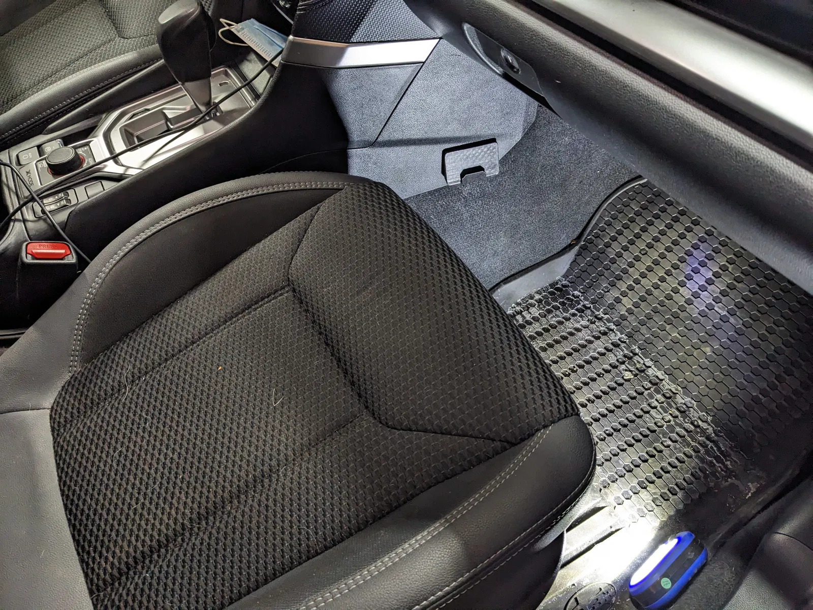 Mình thích gắn hanger lên bệ trung tâm (center console) phía ghế phụ. Nếu bạn gắn kiểu này, nhớ trượt ghế phụ lên hết cỡ về phía trước trước khi dán, để chắc chắn nó không cấn khi ghế di chuyển.