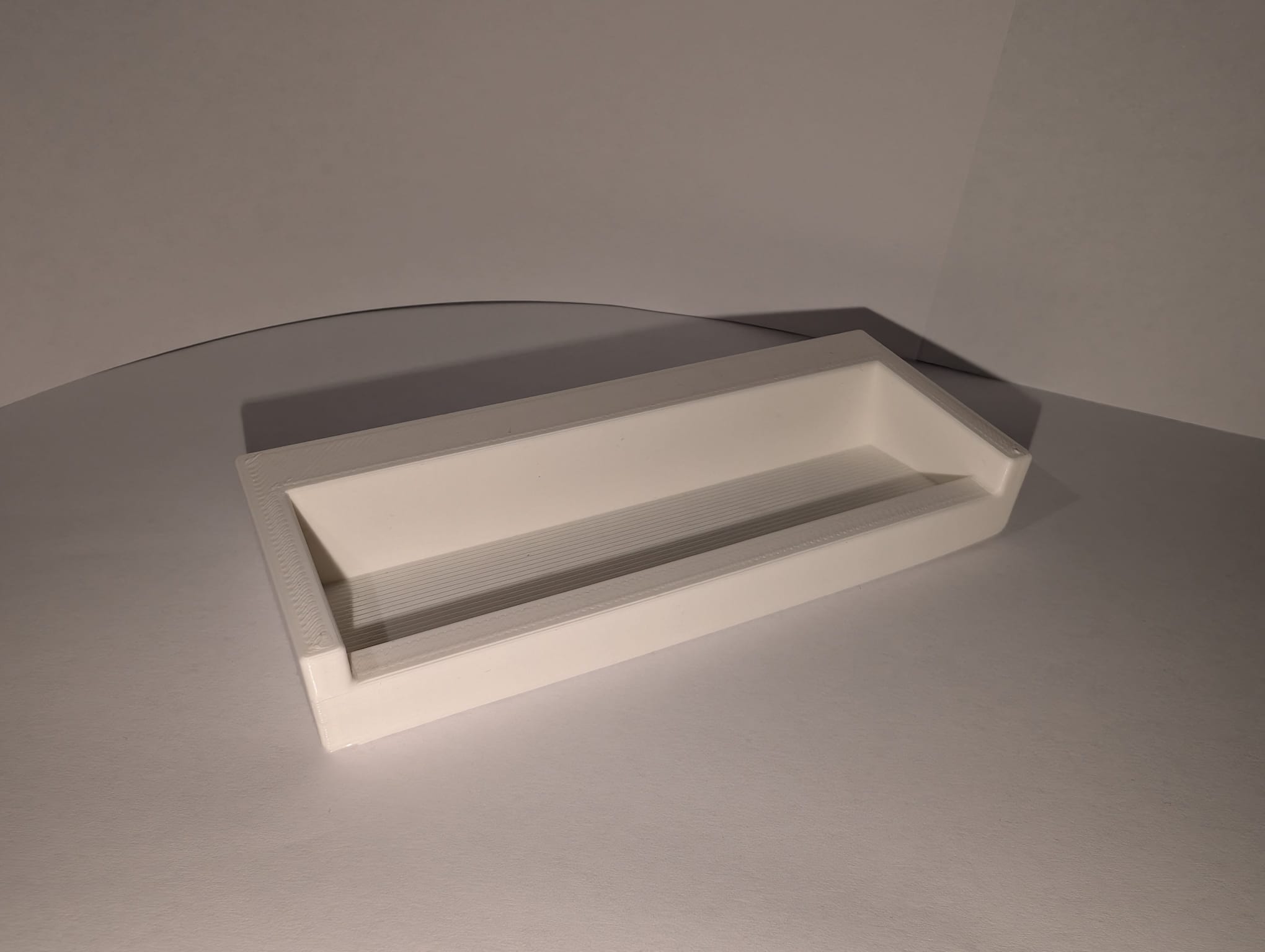 Vì vậy mình đã thiết kế cái kệ/giá để bàn này. Bạn chỉ cần đặt pager vào là đứng gọn trong đó, không cần bấm khớp hay cố định gì cả, và cũng có thể lấy ra lại rất dễ dàng.