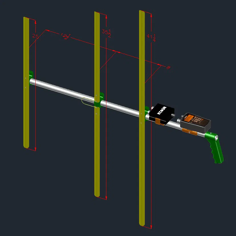 Thiết kế này gồm ngàm (mount) cho director, driven-element và reflector, cho phép gập thước (tape) lại để cất gọn. Mình phủ Plasti-Dip lên hai đầu các đoạn thước (sau khi giũa/chà nhám).